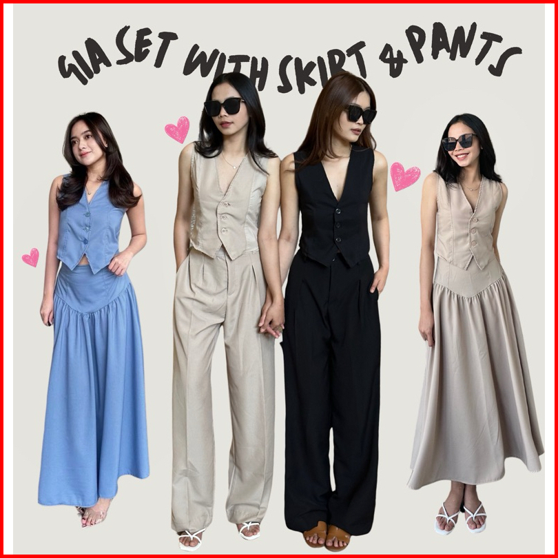 Elevenbasic Gia Set Pants Set Skirt One Set Vest Wanita Dengan Rok Celana Setelan Bisa Dibeli Terpisah