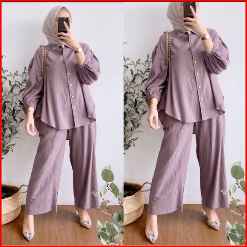Mfq.id Premium Yetta One Set Wanita Polo Linen Setelan Wanita Motif Polos Linen Premium Terlaris Termurah Elegan Simpel
