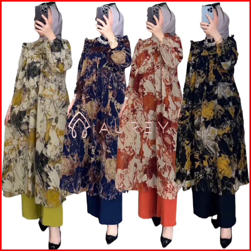 Oneset Midi Wanita Nadia Setelan Tunik Panjang Terbaru Wanita Oneset Long Tunik