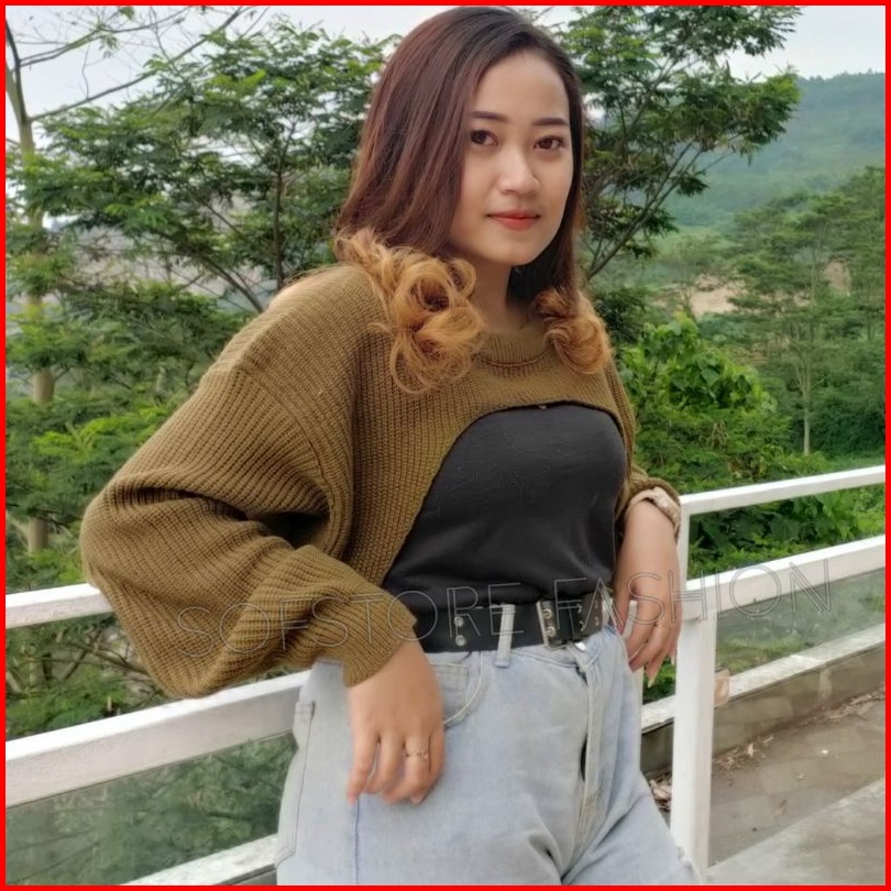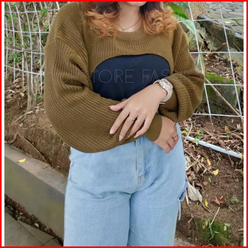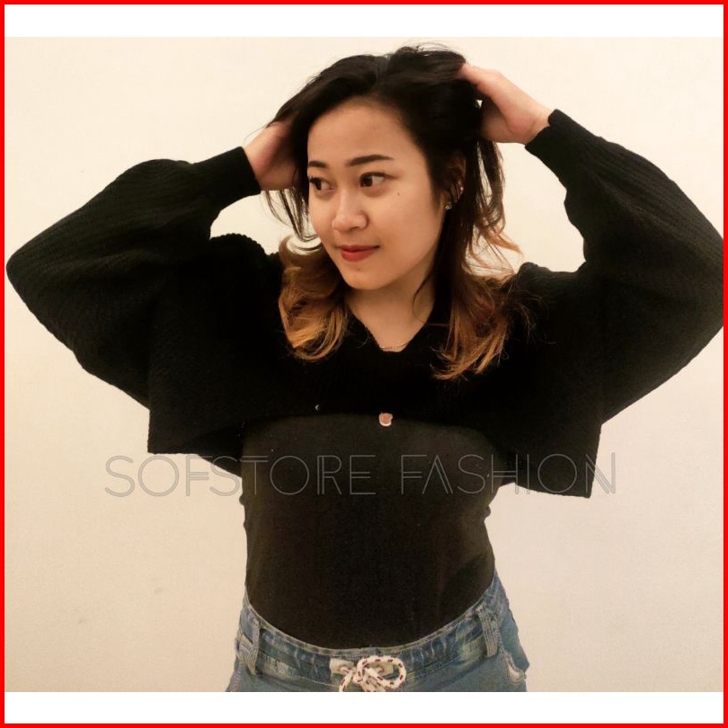 Croptop Rib Cardi Oversize Balero Sweater Atasan Wanita Tangan Balon