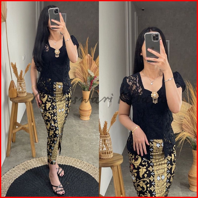 Kebaya Bali Set Brukat Sofia Lilit Hitam Rok Panjang