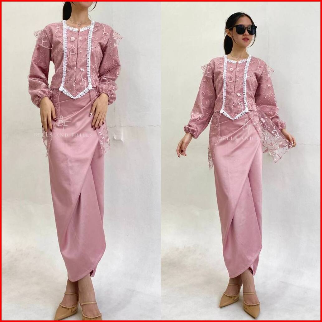 Kamila Set Modern Brukat Kebaya Rok Lilit Outer Lace Kebaya Set Kutubaru Modern B4