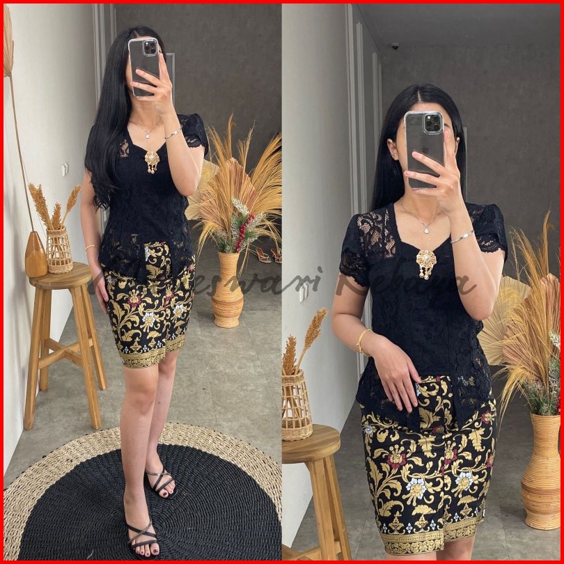 Kebaya Bali Set Brukat Lilit Hitam Rok Pendek