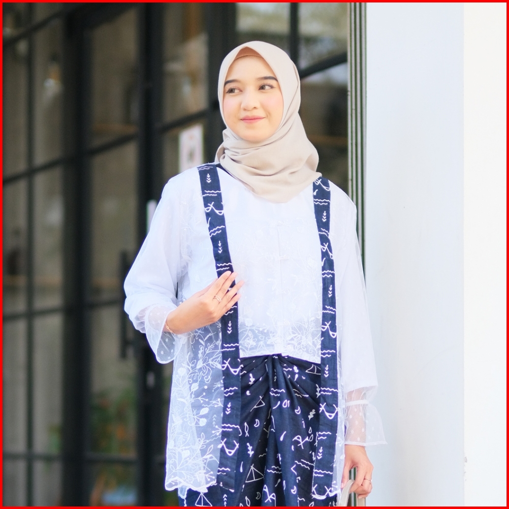 Putri Jawi - Setelan Kebaya Modern Celia Outer One Set Brokat Baju Wisuda Kondangan Atasan Kutubaru Rok Lilit