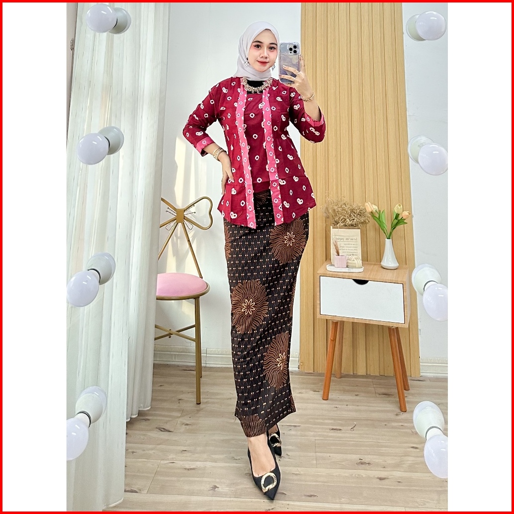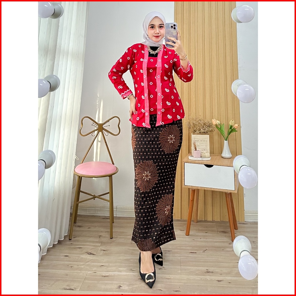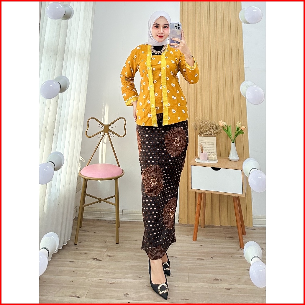 Kebaya Jumputan Kekinian Rok Genes Kekinian Kebaya Kutu Baru One Set Kebaya Bisa Pisah Rok Span Kekinian Tersedia Ukuran
