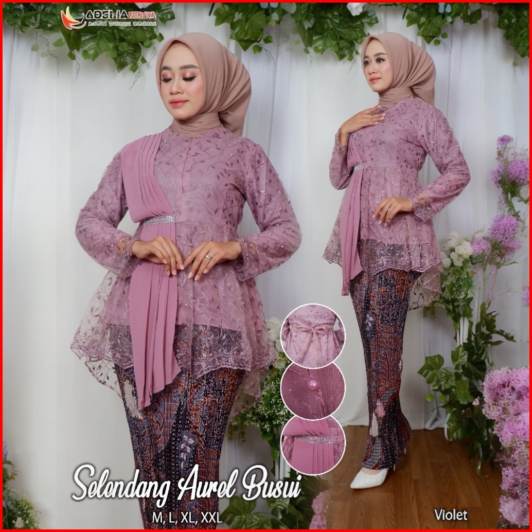 Ak - Setelan Kebaya Blouse Selendang Aurel - Kebaya Modern Terbaru - Pakaian Wisuda Akad Nikah Pesta