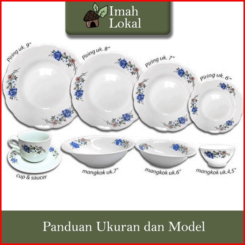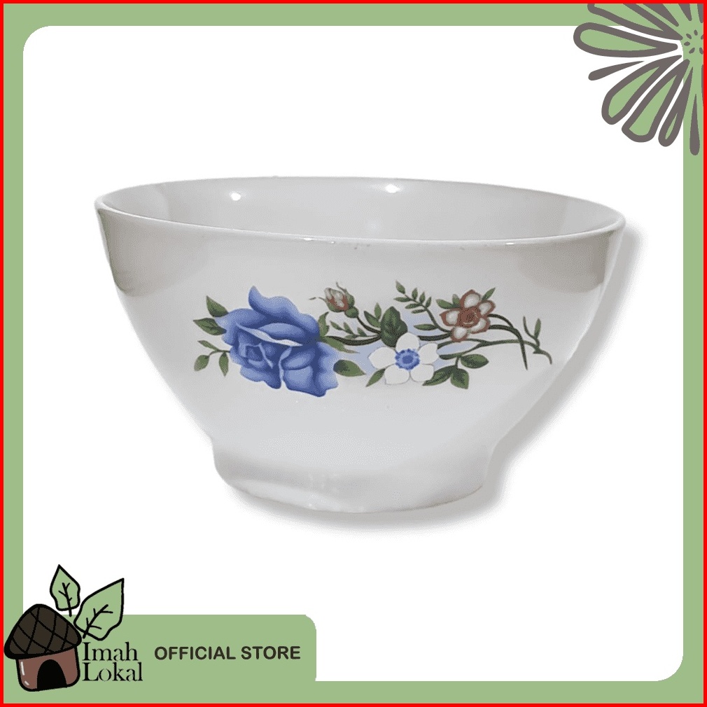 12pcs Mangkok Keramik Lucky Kembang Rose 4.5 6 7 Inch Mangkuk Makan - Bunga Biru 58104