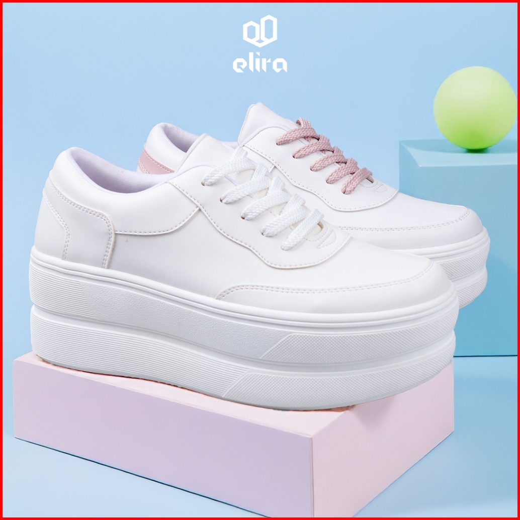Elira Sepatu Sneakers Platform Wanita Gana White Pink Tinggi Casual Shoes Women