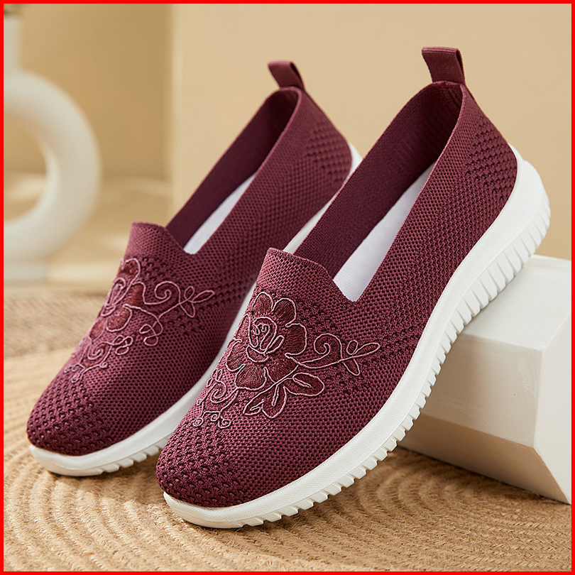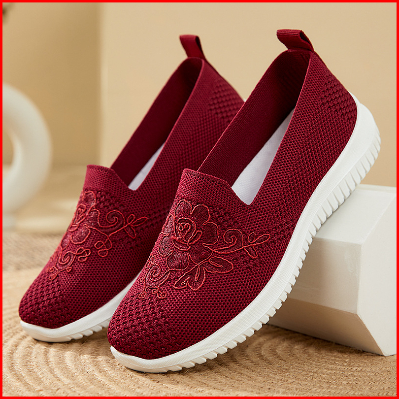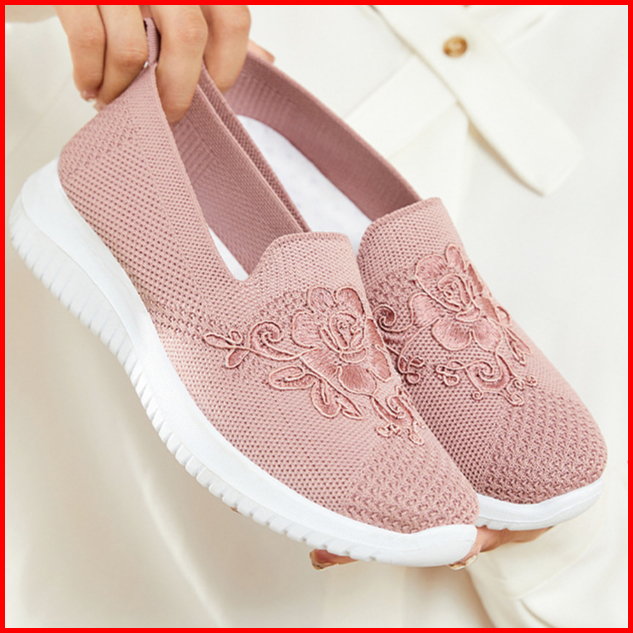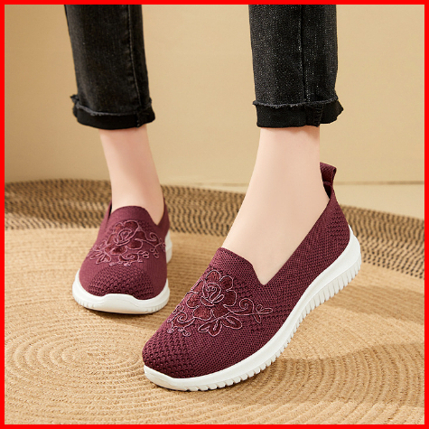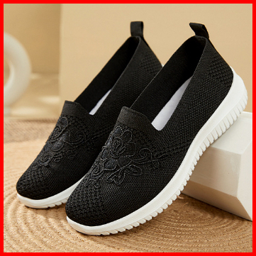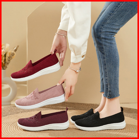 Sepatu Wanita Sneakers Rajut Import Flat Shoes Slip On Sol Karet Putih Anti Licin Kotak Box