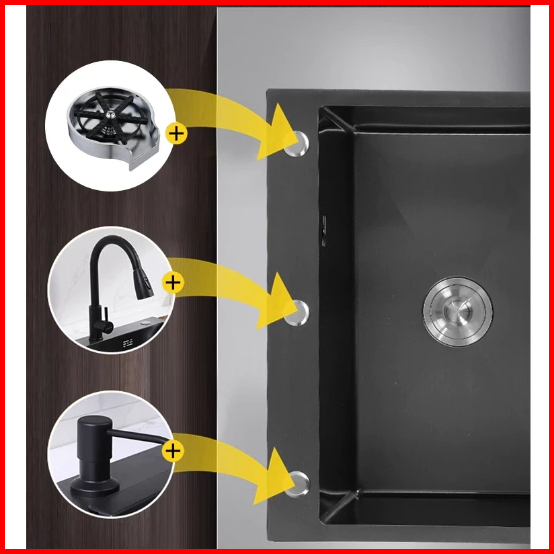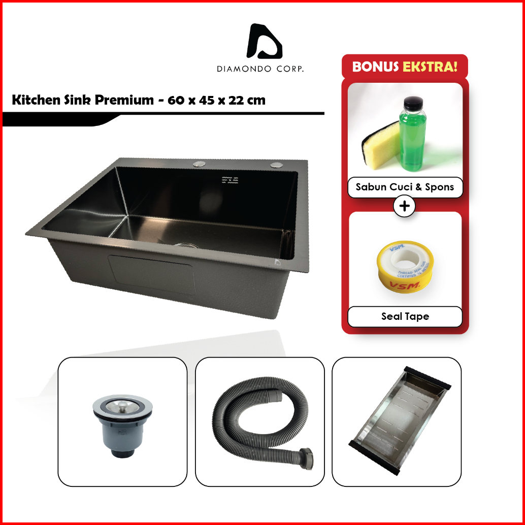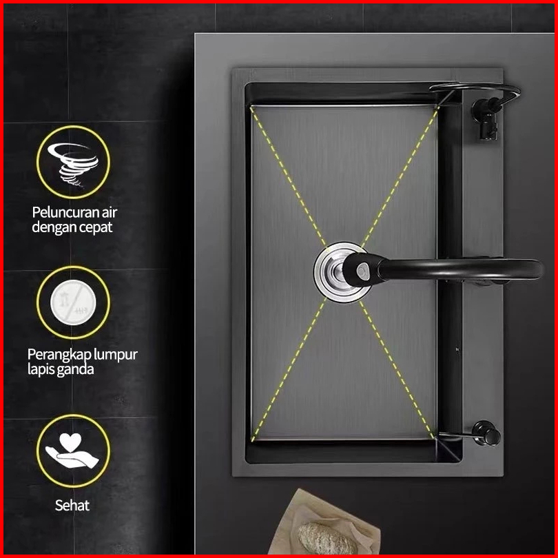 Promo Premium Kitchen Sink Bak Cuci Piring 60x45 Cm Premium Wastafel Stainless Sus 304 Super Tebal 3 4 Milimeter Hitam S
