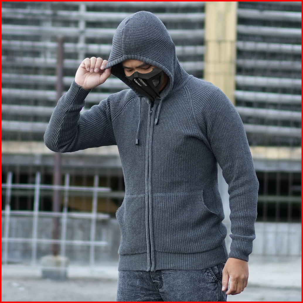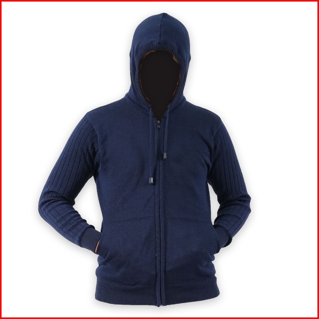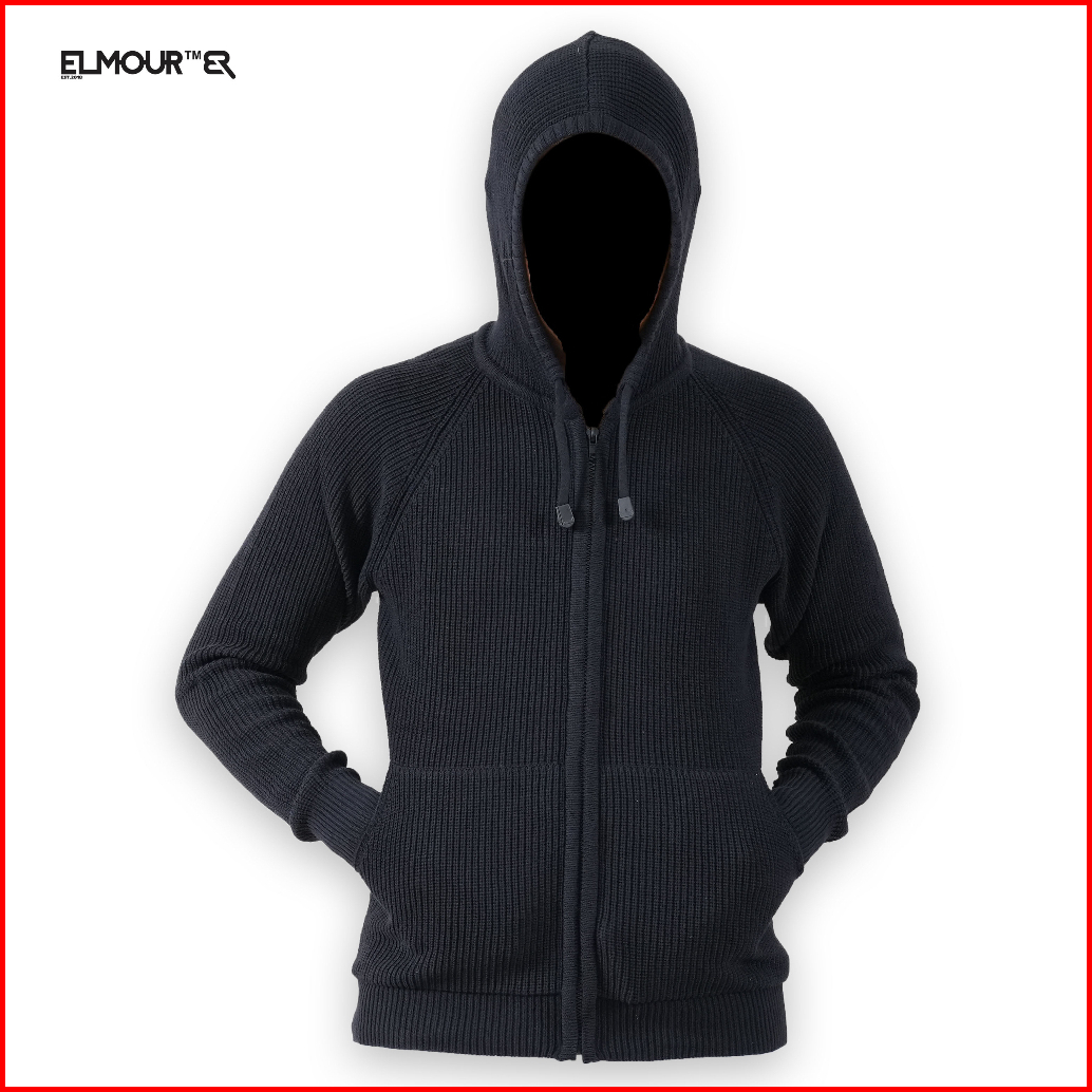 Elmour Rajut Pria Hoodie Resleting Saku Bahan Katun Tebal