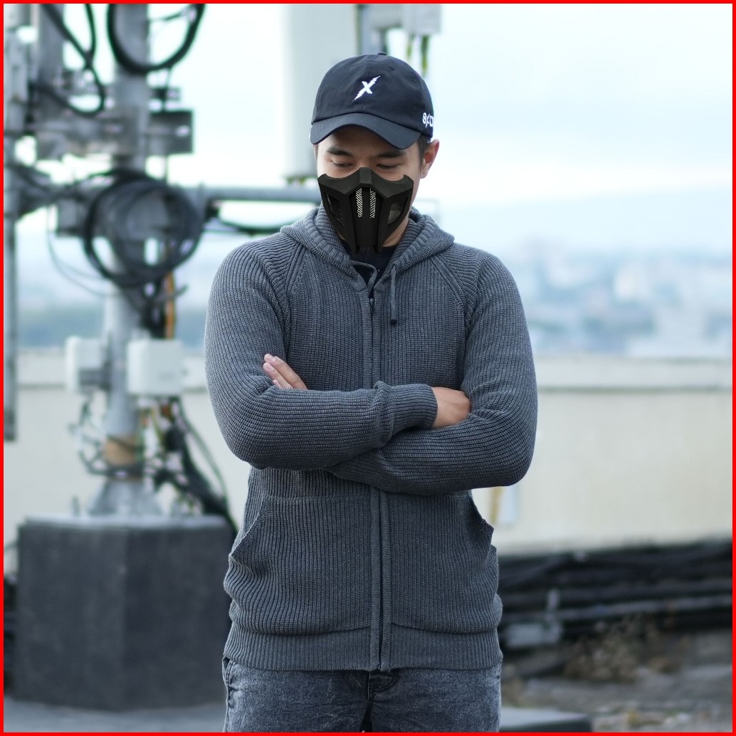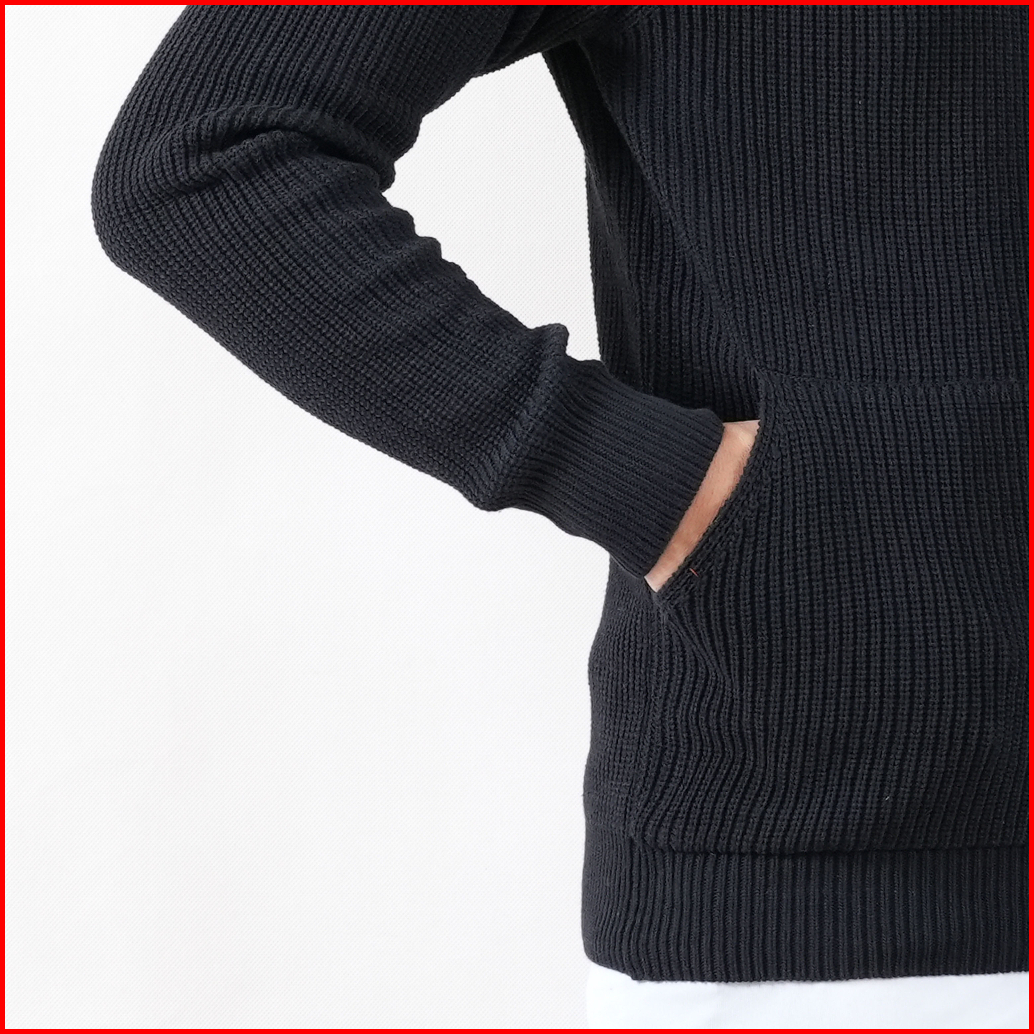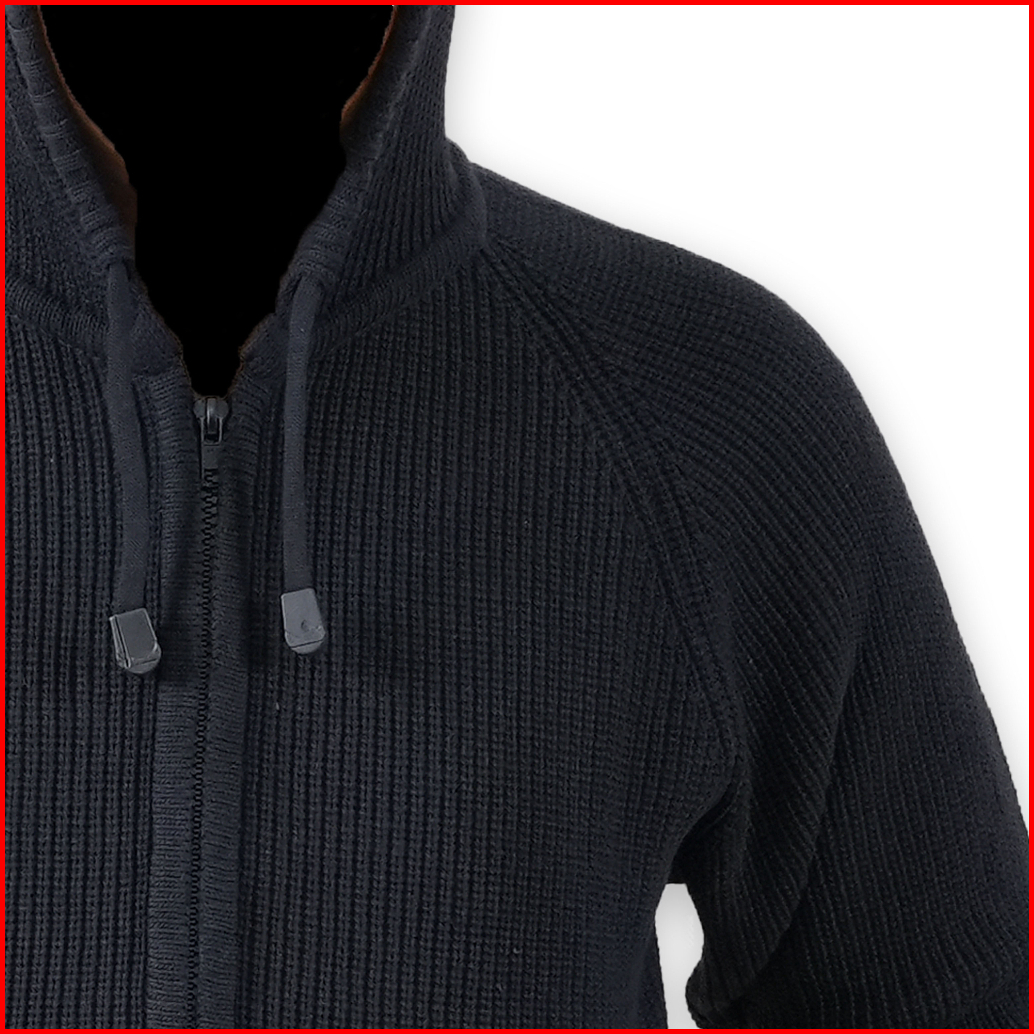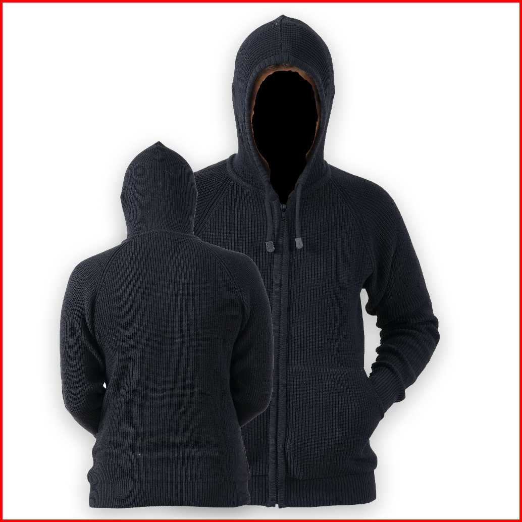 Elmour Rajut Pria Hoodie Resleting Saku Bahan Katun Tebal