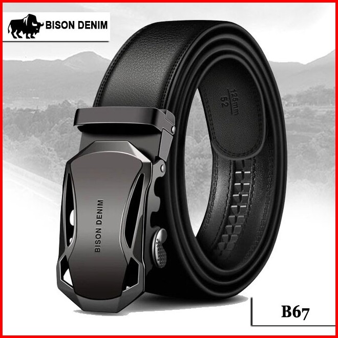 Bison Denim Ikat Pinggang Pria Gesper Sabuk Kulit Sapi Asli Auto Lock Sliding Men Belt B67