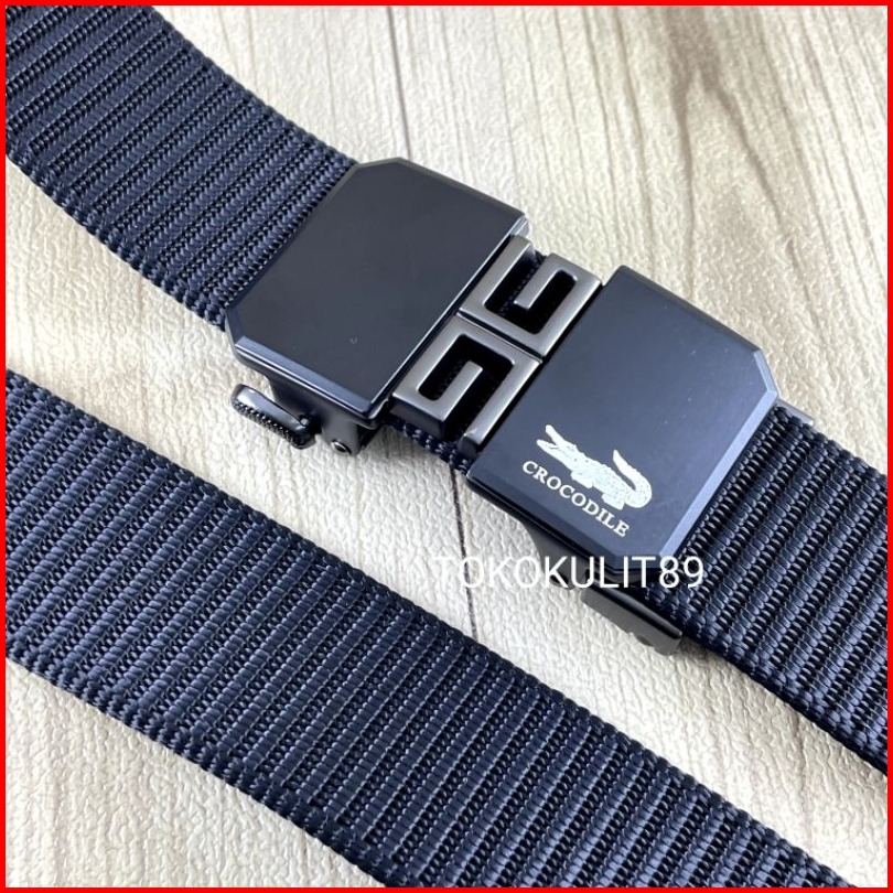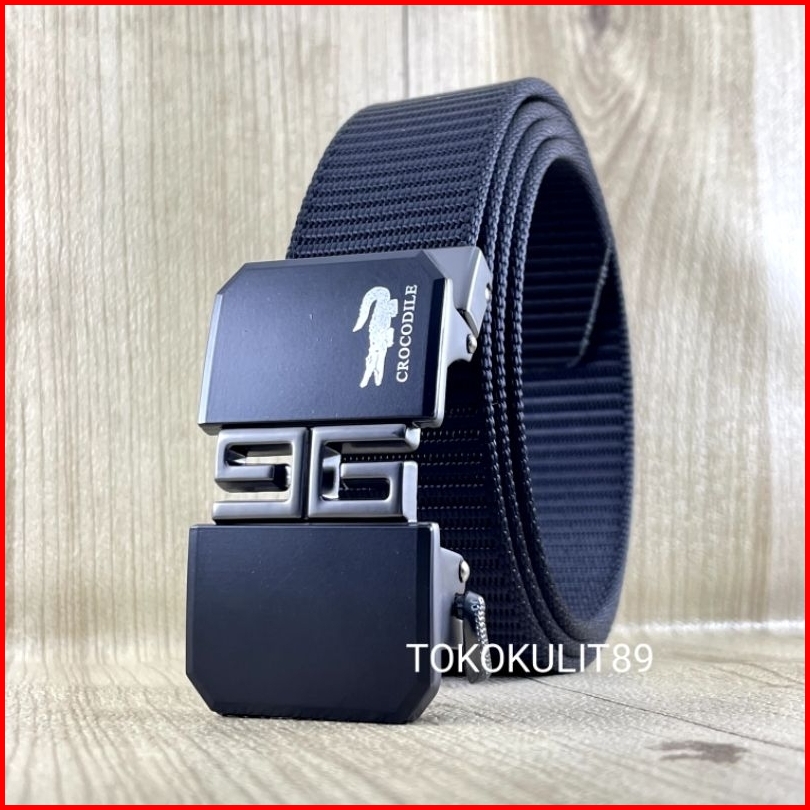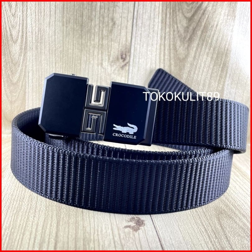 Ikat Pinggang Pria Model Jepit Bahan Canvas Nylon Gesper Sabuk Import