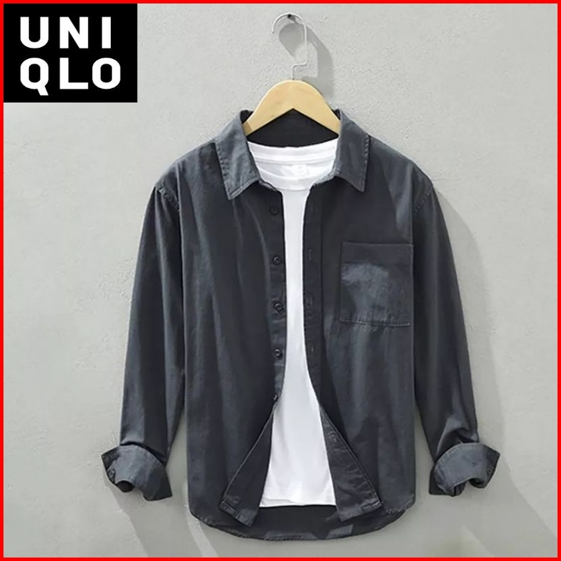 Promo Kemeja Putih Uniqlo Panjang Polos Casual Slim Fit
