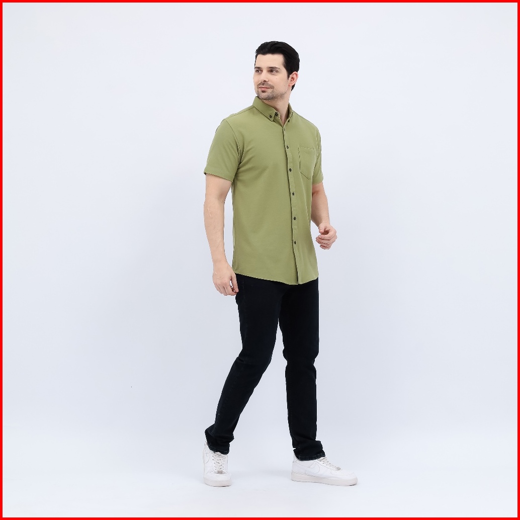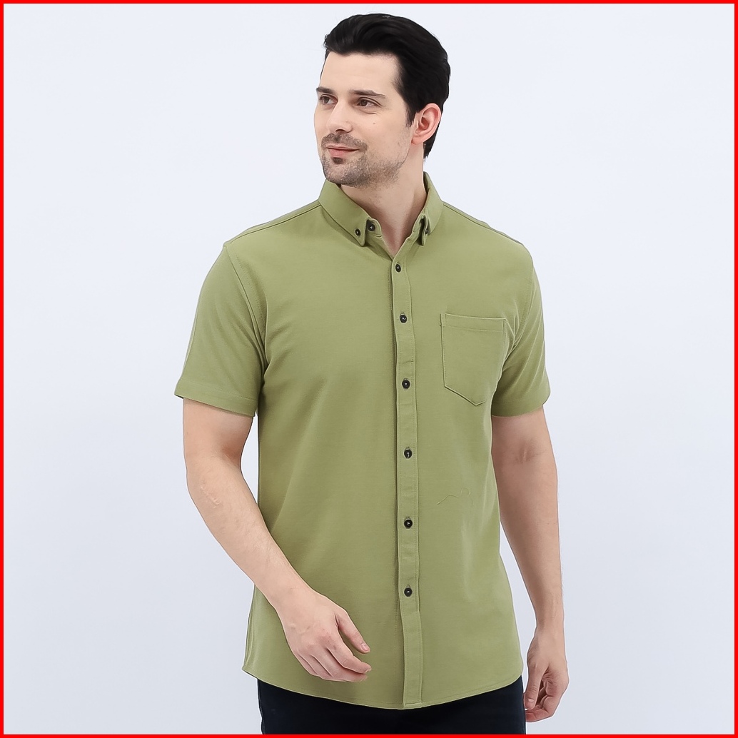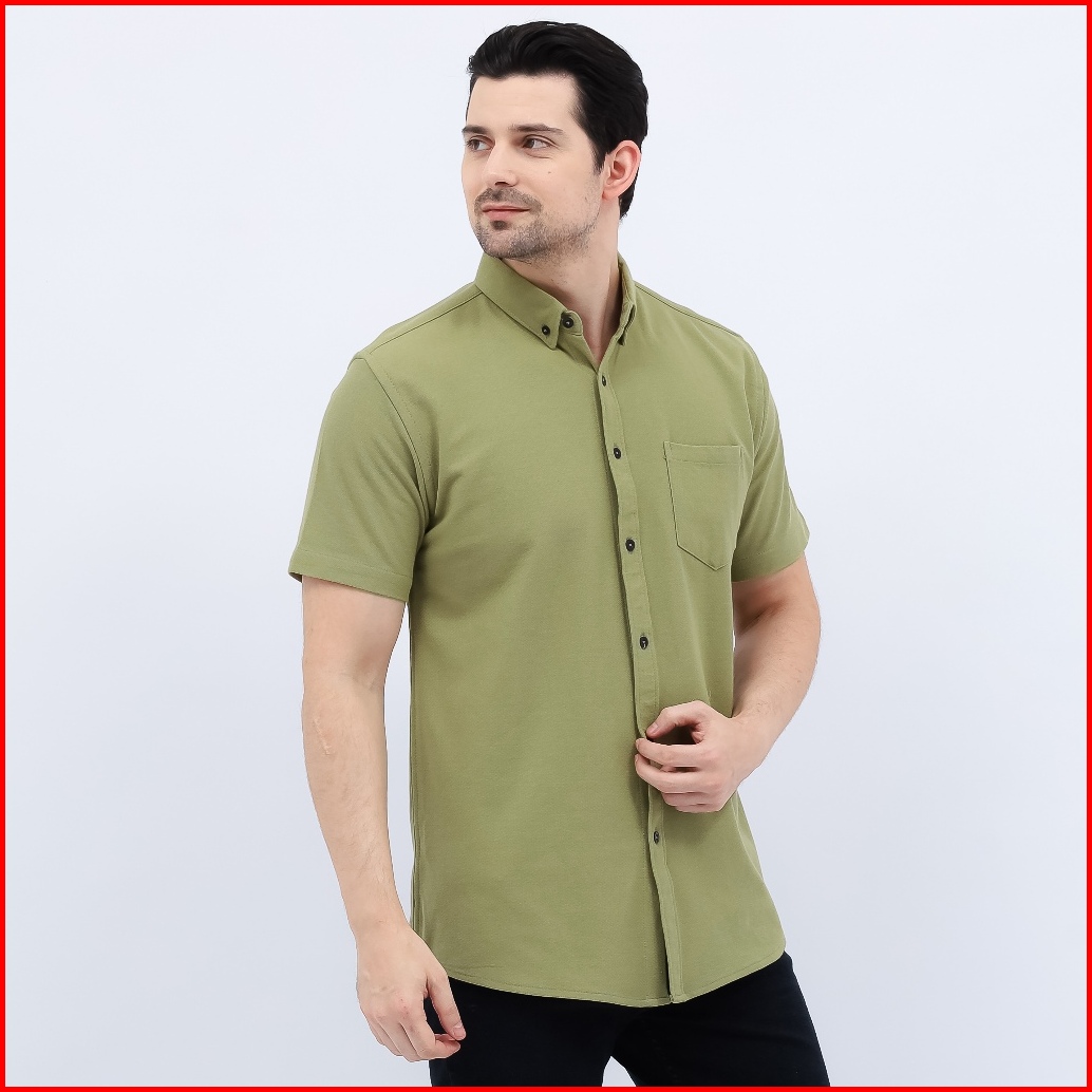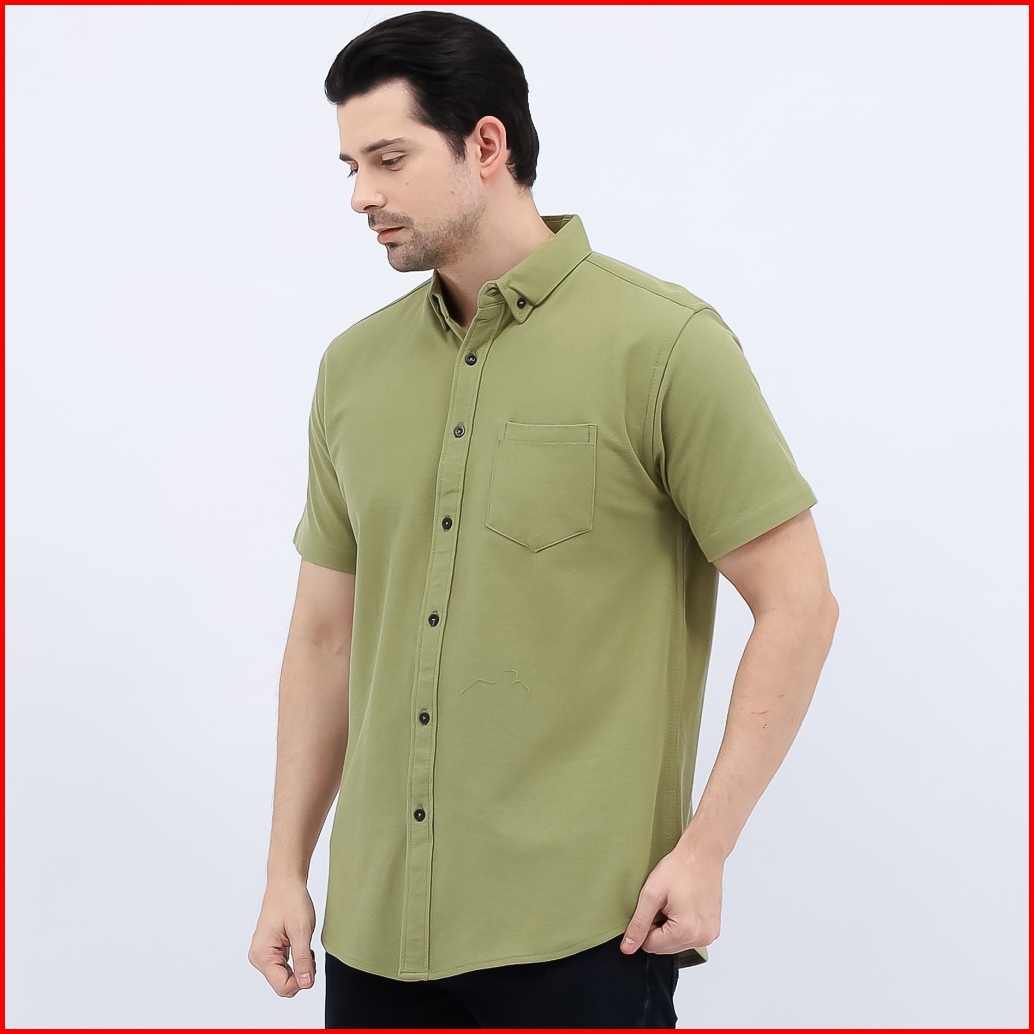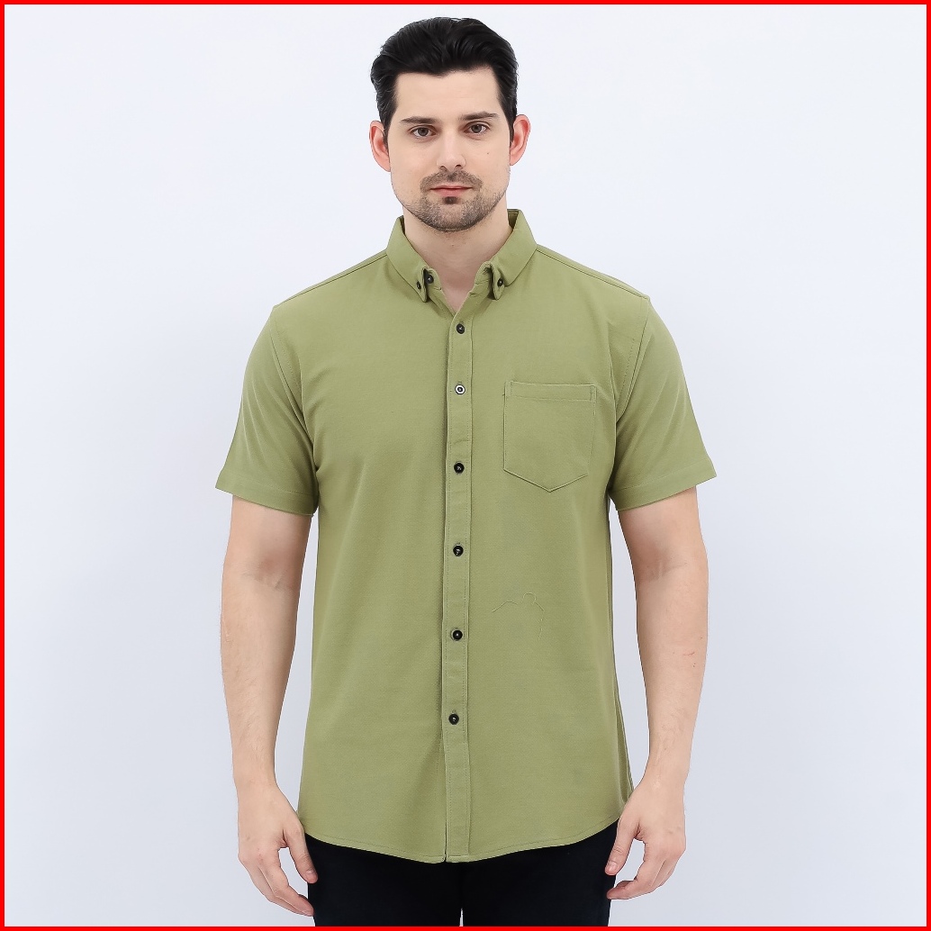 Kemeja Casual Pria Lengan Pendek Polos Formal Kantor Trendy Cotton Pique Premium Quality