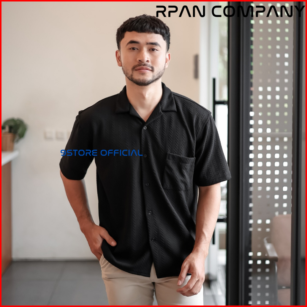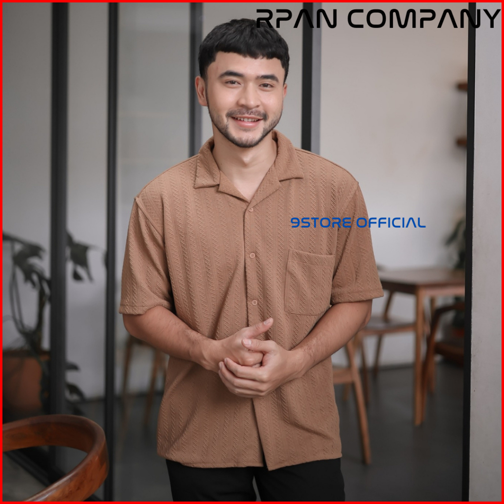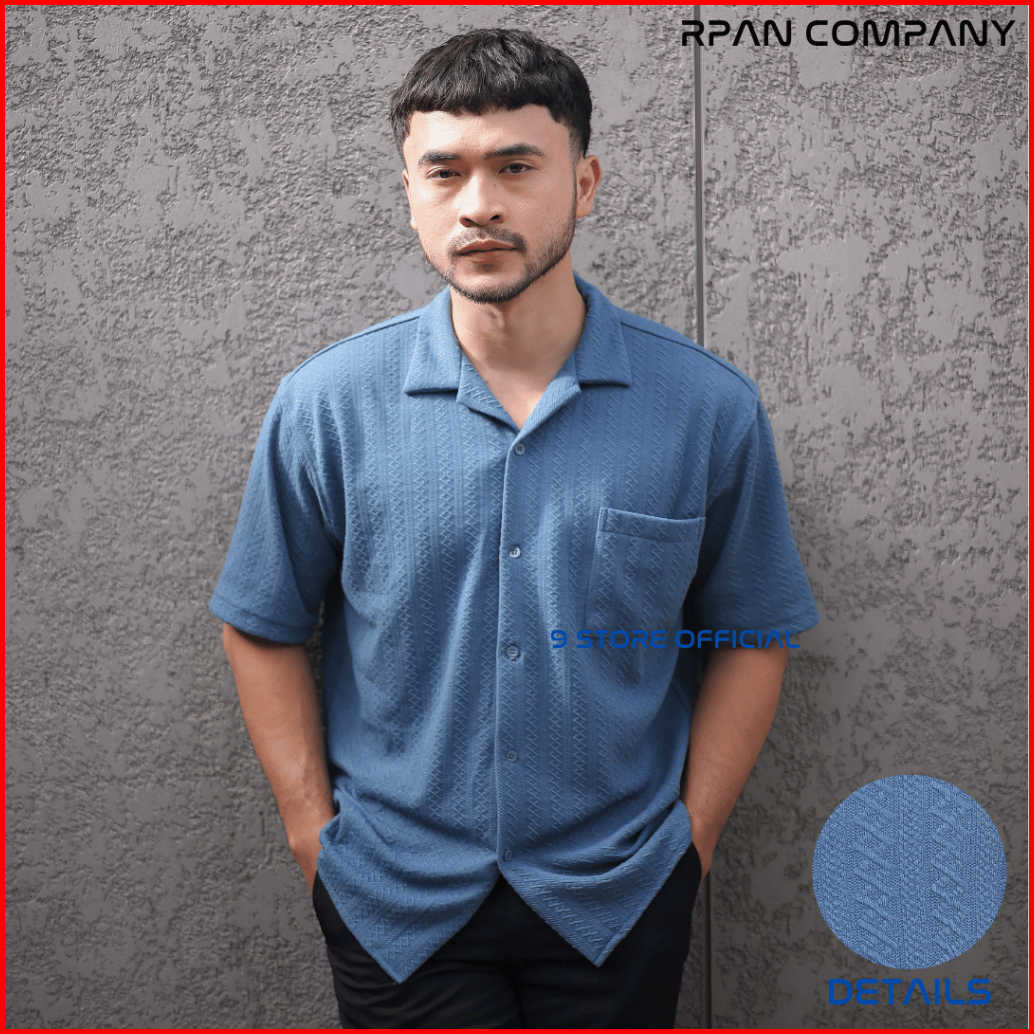 Kemeja Bowling Shirt Knit Motif Pria Cuban Bowling Shirt Hawai Lengan Pendek Bahan Knit Premium Bermotif.