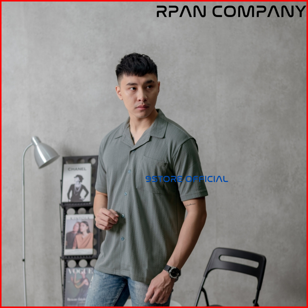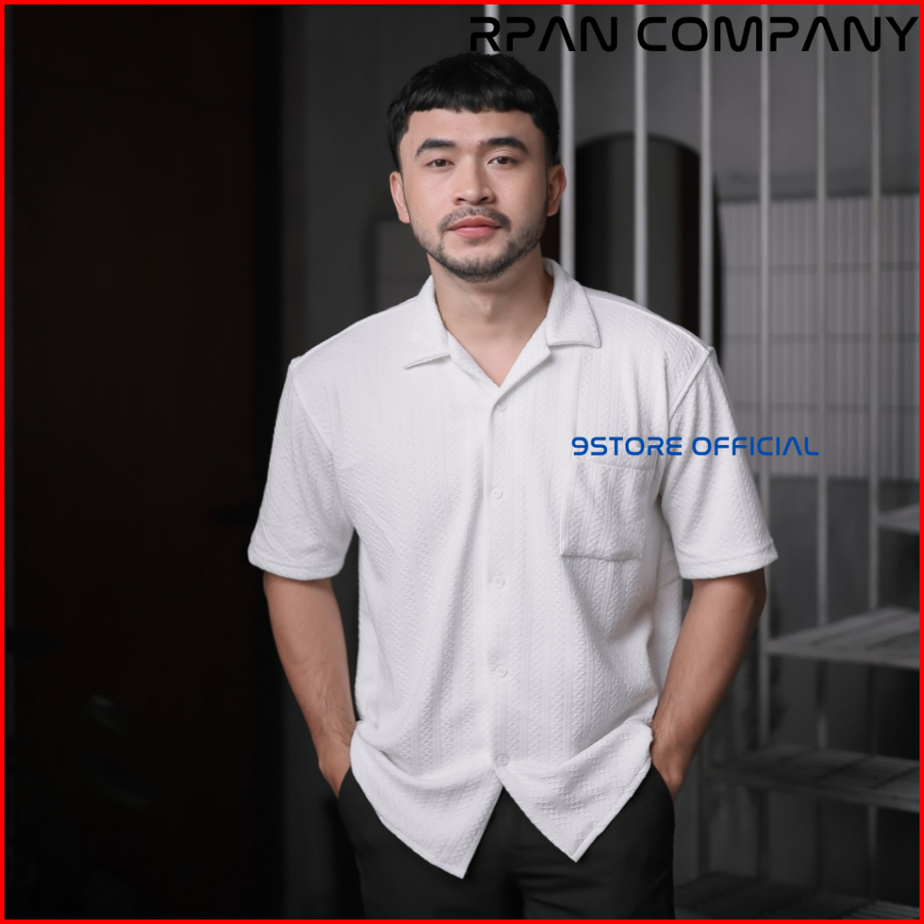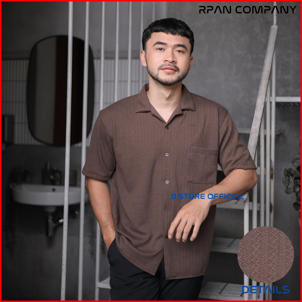 Kemeja Bowling Shirt Knit Motif Pria Cuban Bowling Shirt Hawai Lengan Pendek Bahan Knit Premium Bermotif.