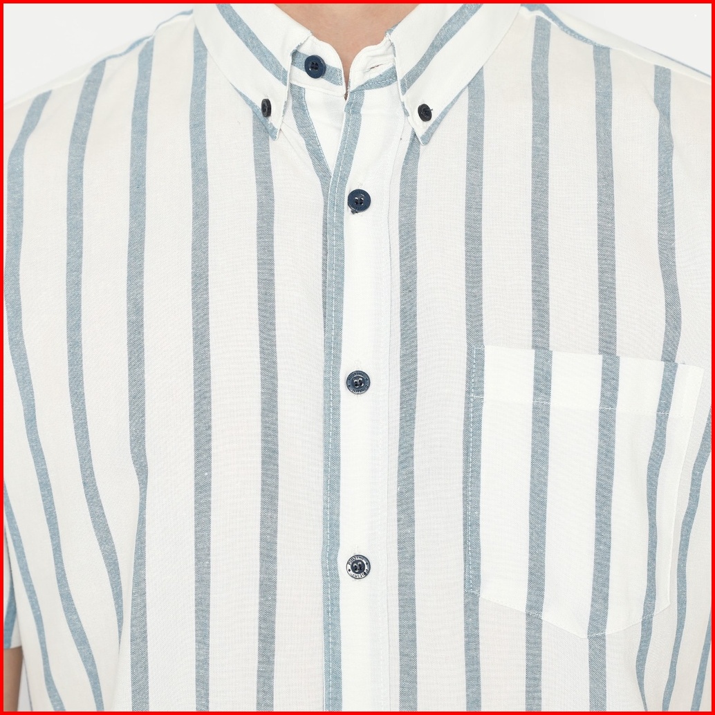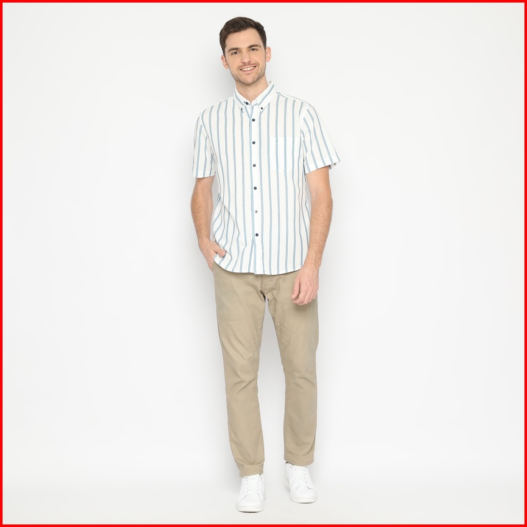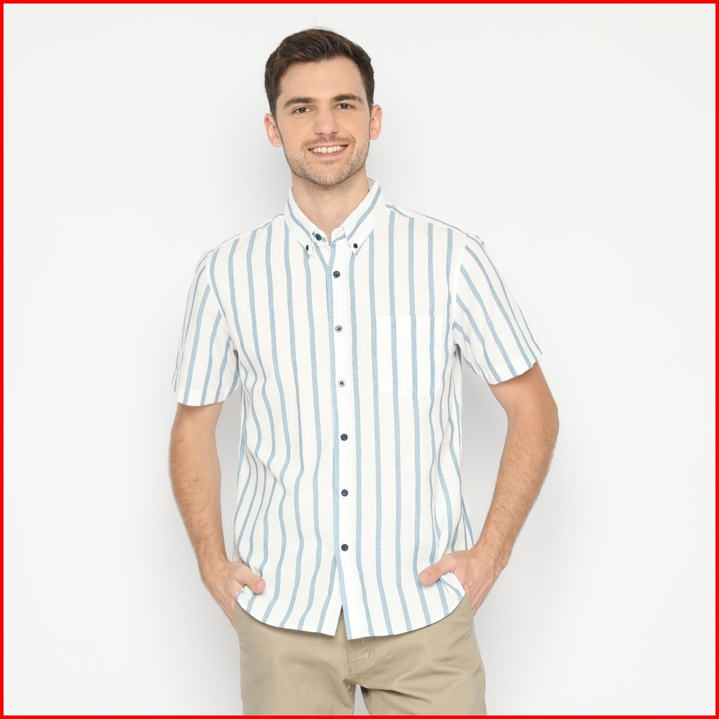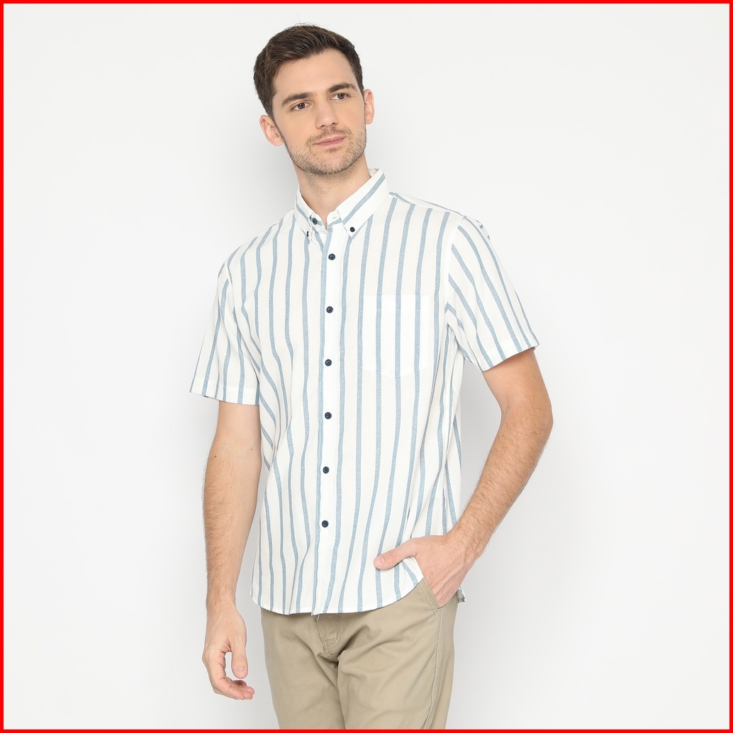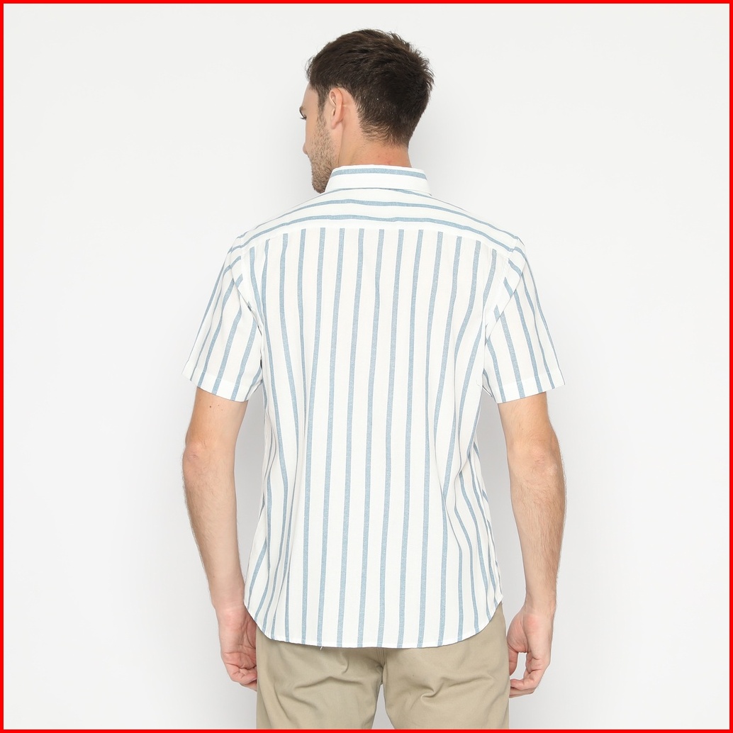 Platini Kemeja Motif Salur Pria Lengan Pendek Katun Oxford Biru 73272