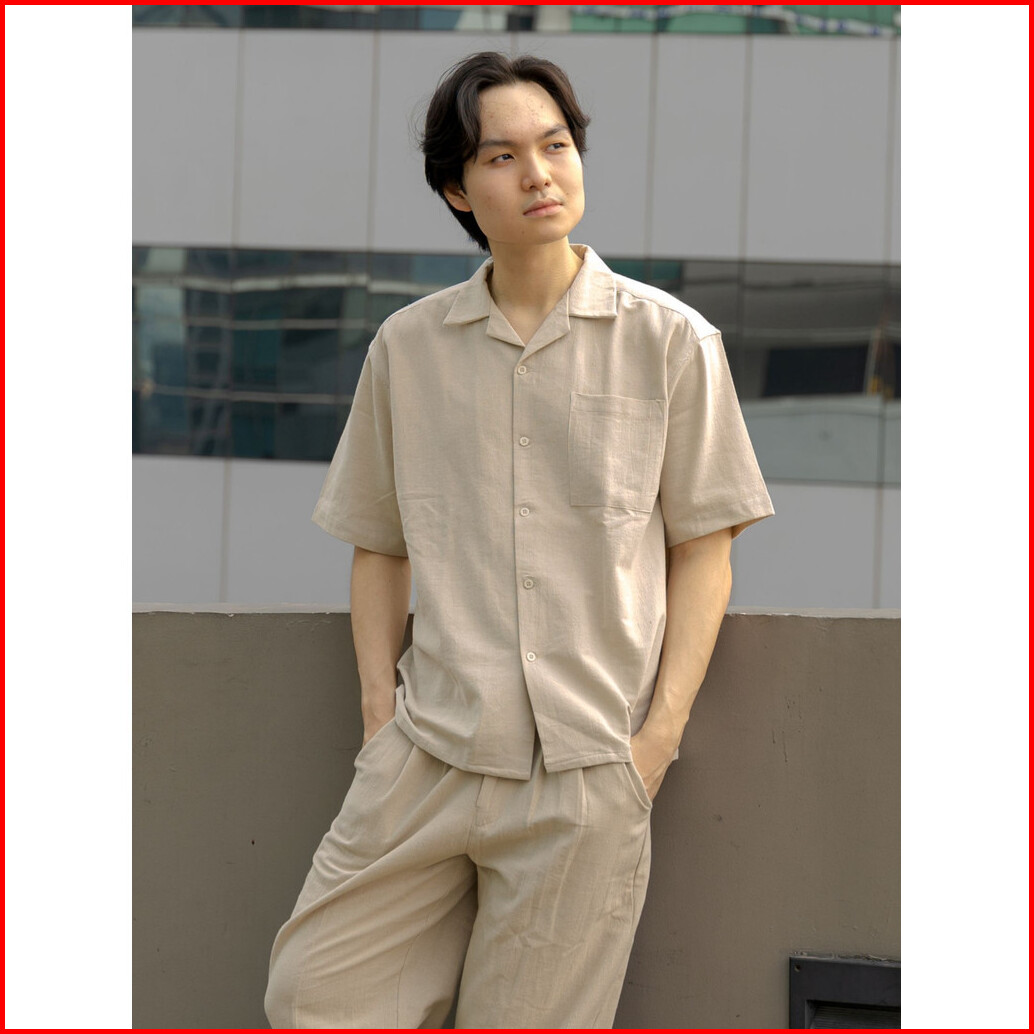 Plfr Linen Shirt Kemeja Lengan Pendek Oversize Pria S.1101