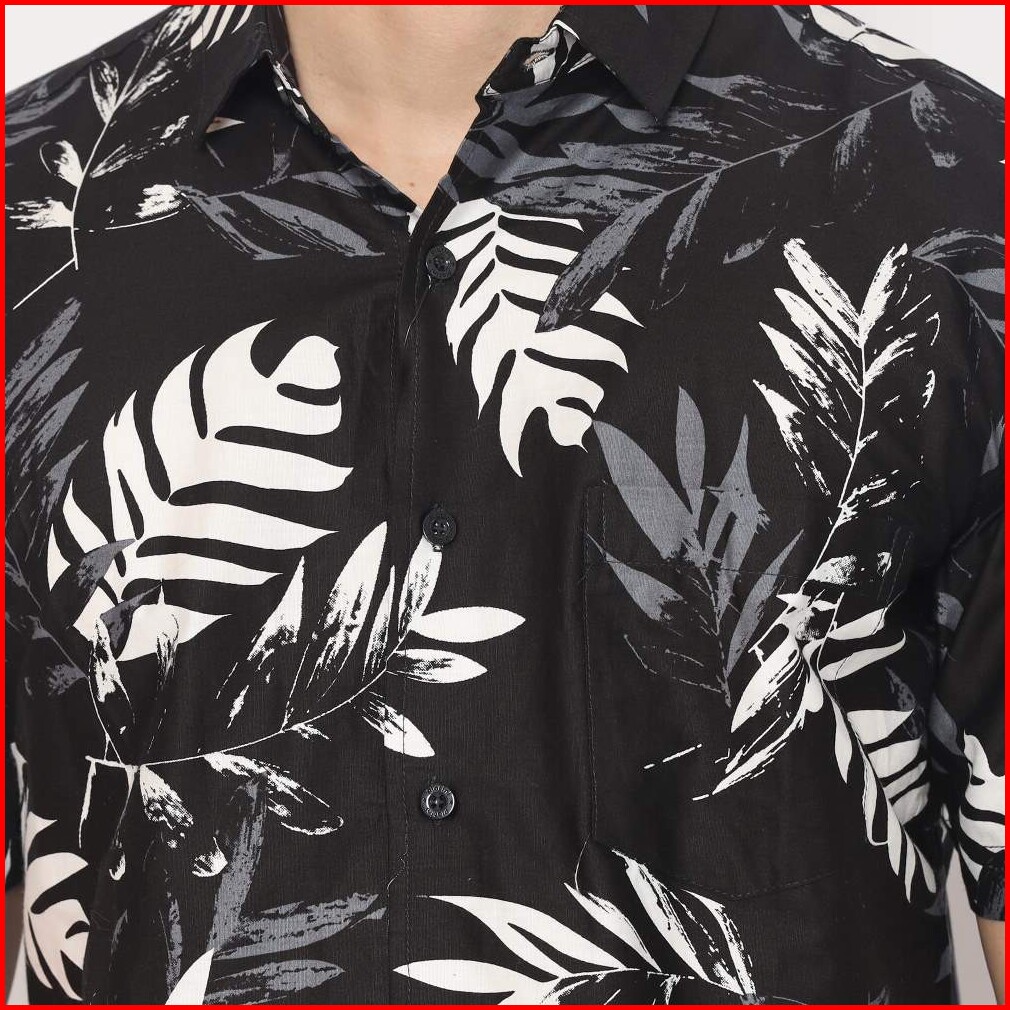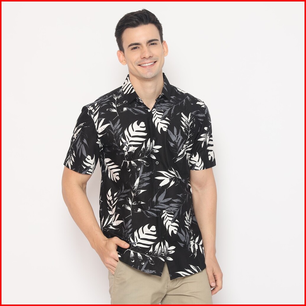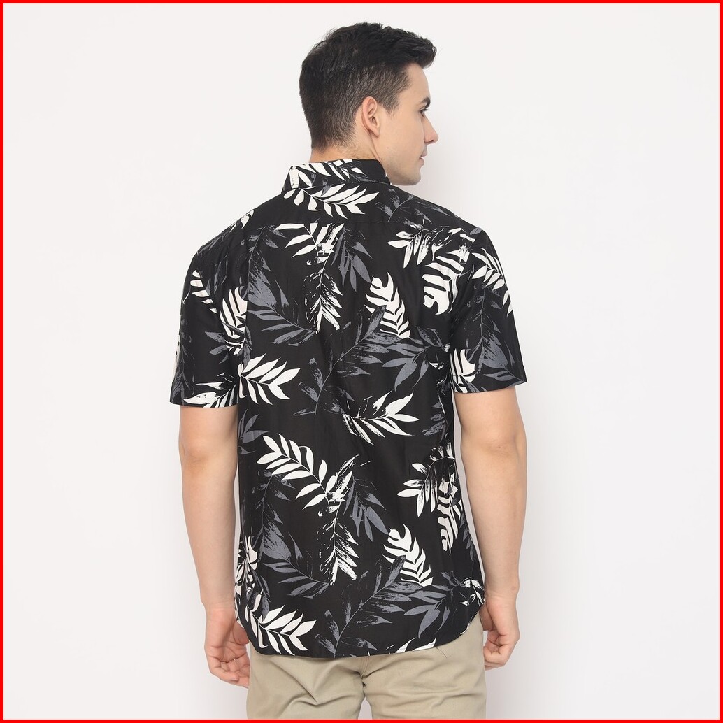 Platini Kemeja Motif Hawai Pria Lengan Pendek Katun Hitam 132057