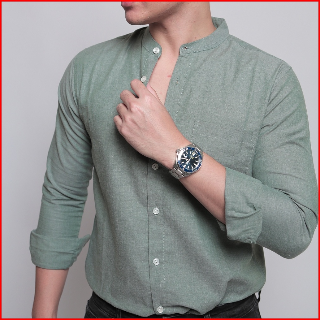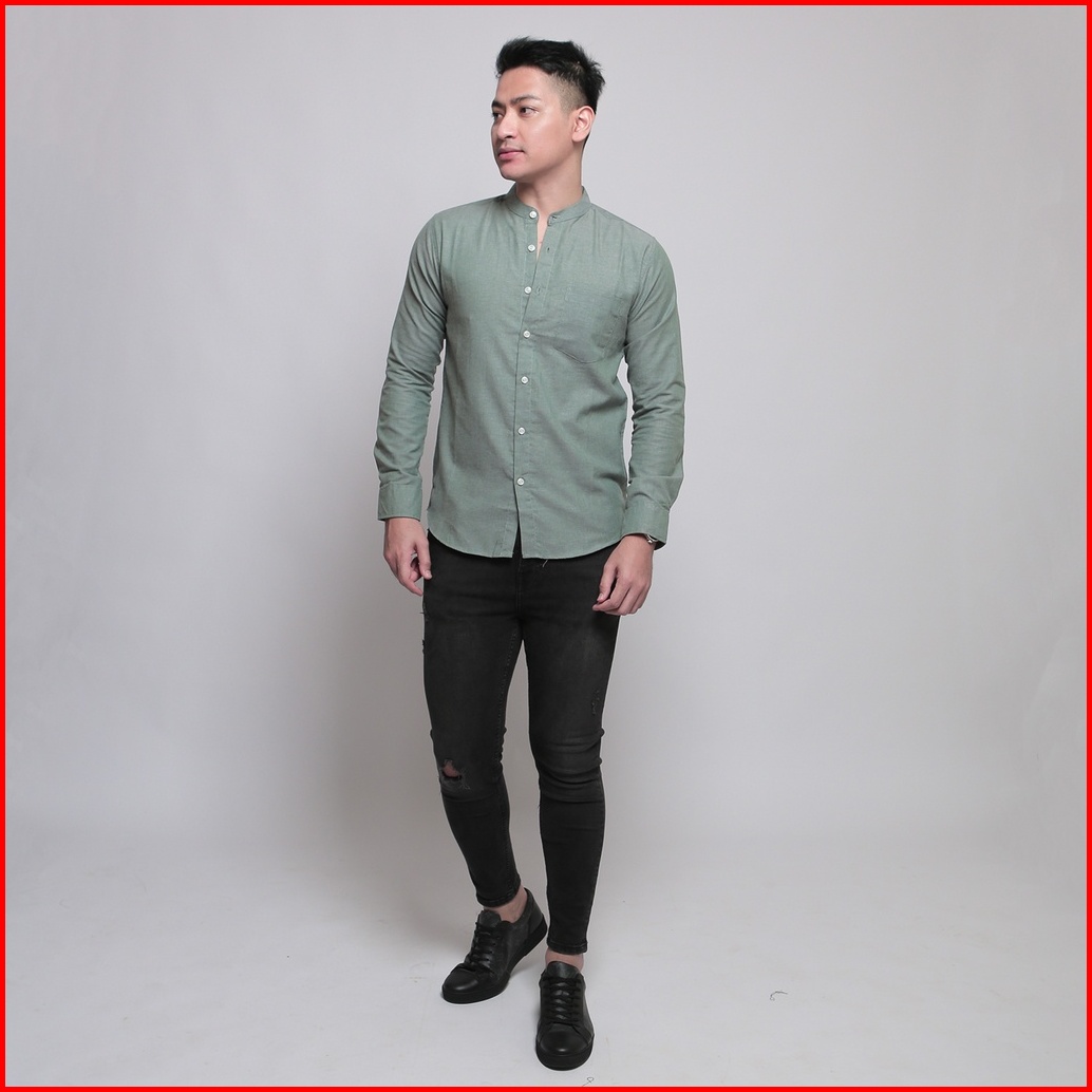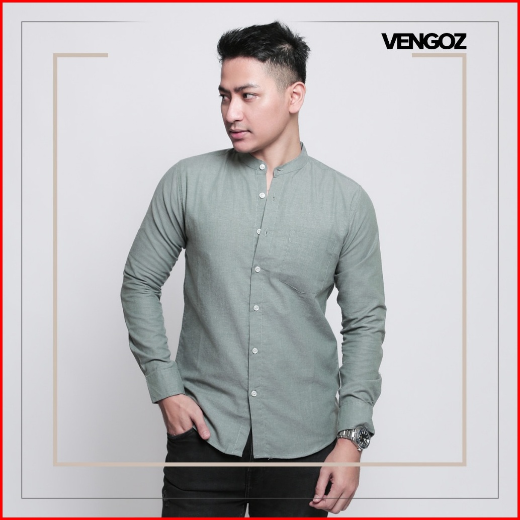 Vengoz Kemeja Oxford Panjang Shanghai Pria Slim Fit - Forest Green