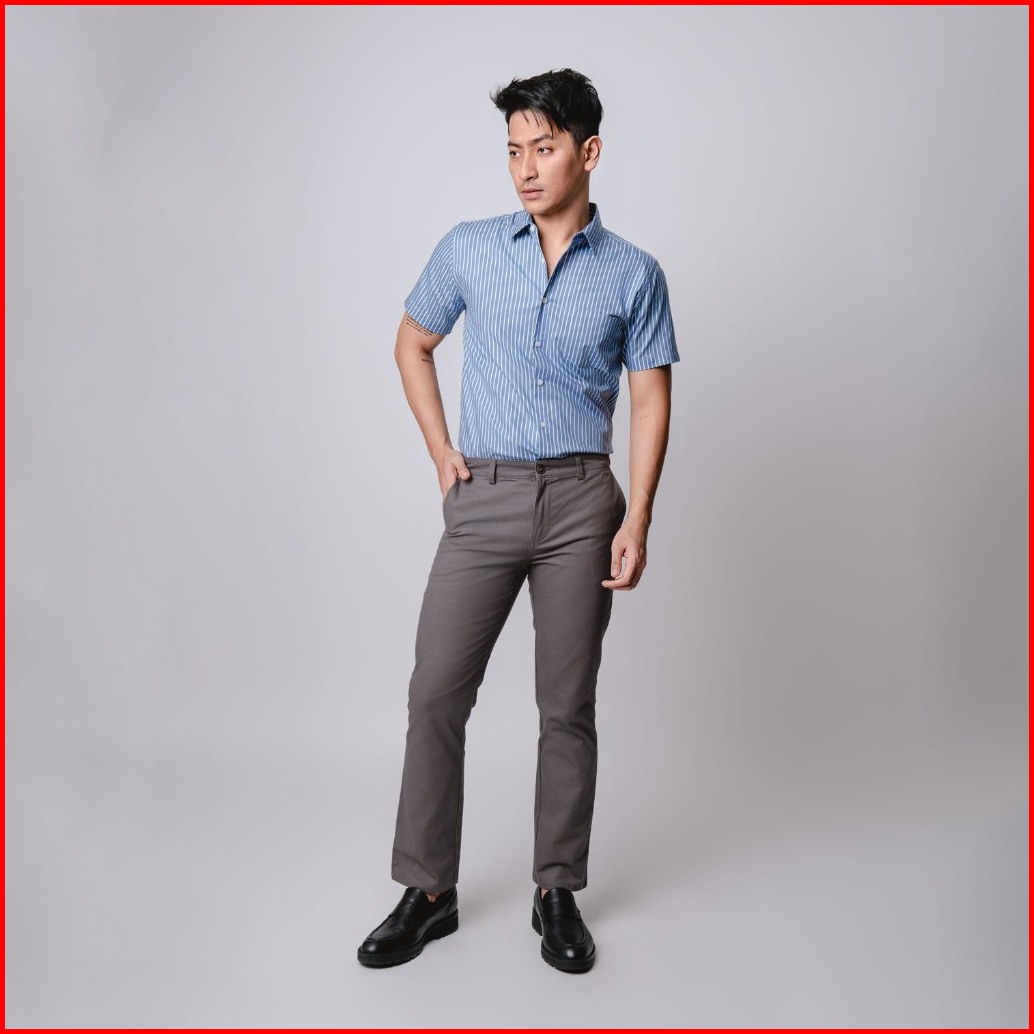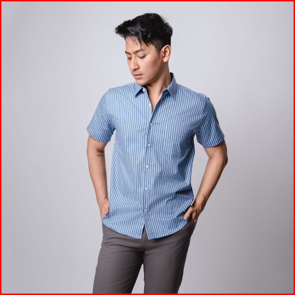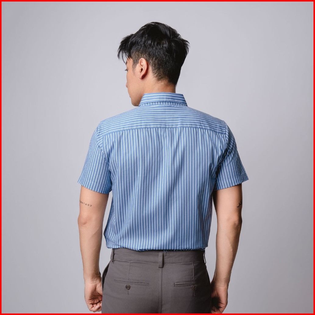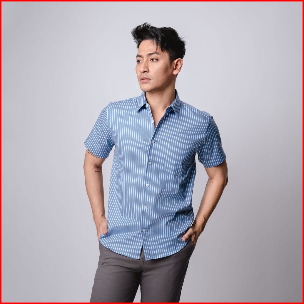 Vengoz Kemeja Pria Slim Fit - Hugo Stripe Shirt Blue Sky Ss