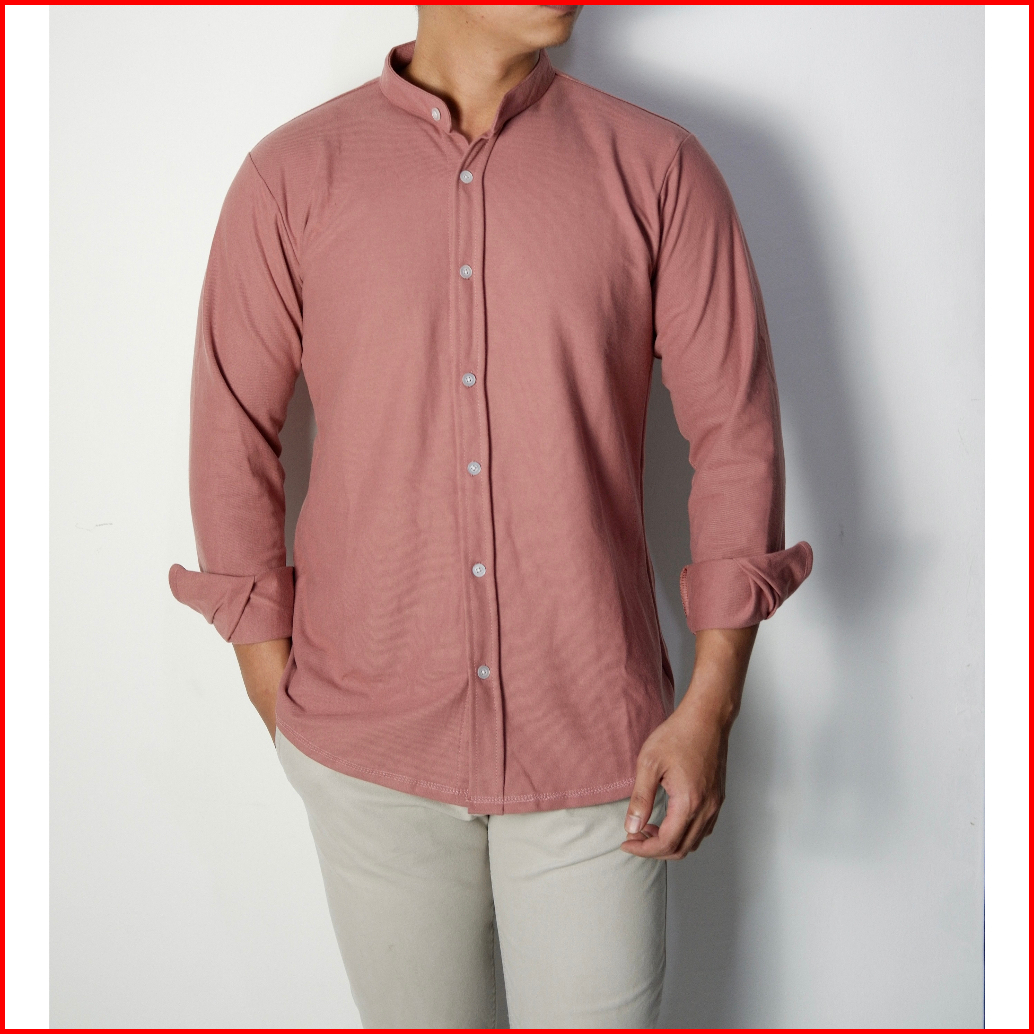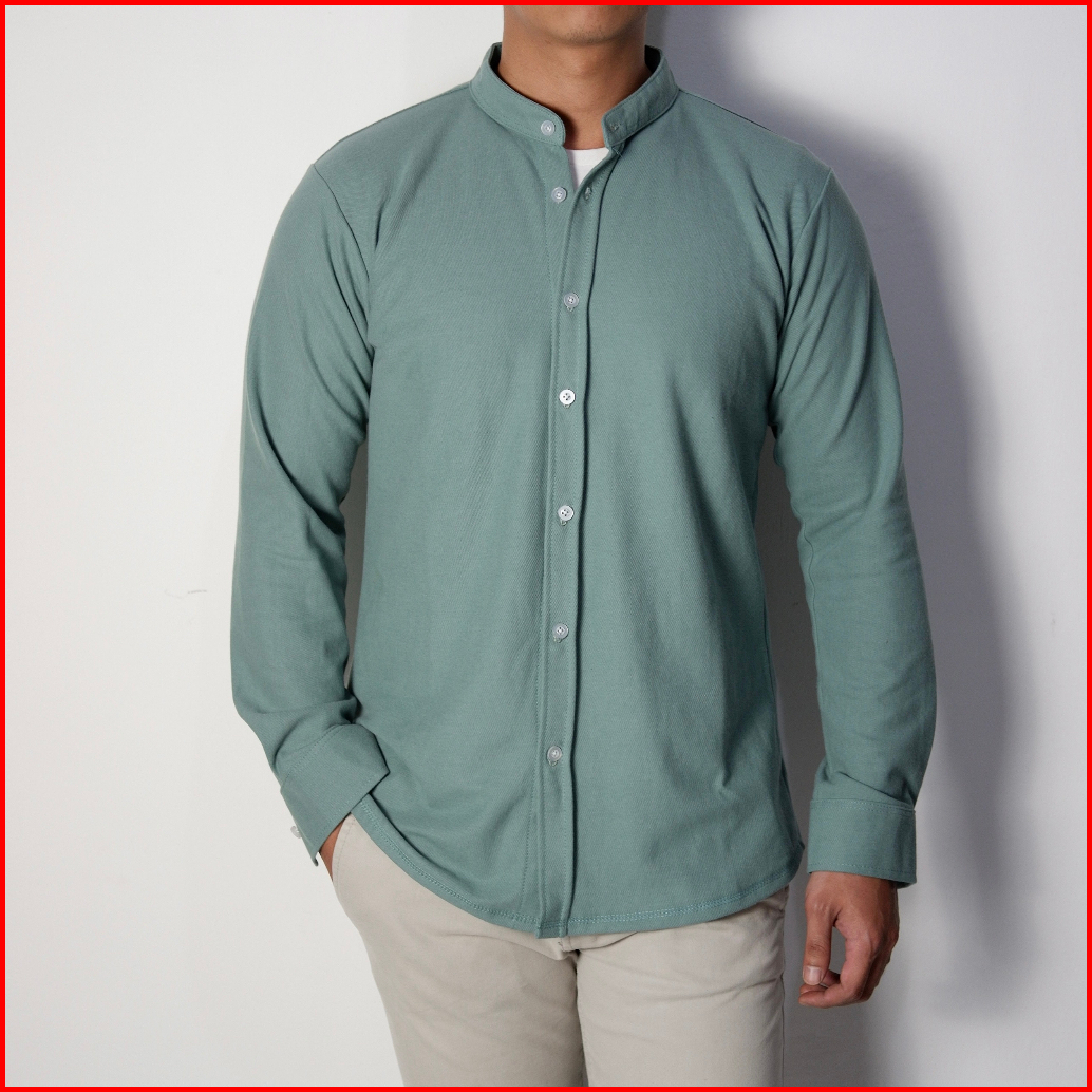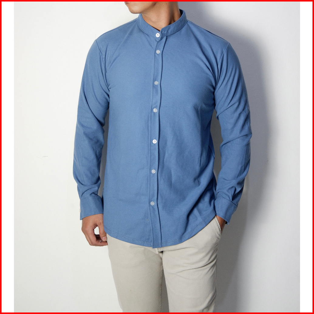 Kemeja Pria Lengan Panjang Casual Polos Cotton Pique Kerah Ciangi