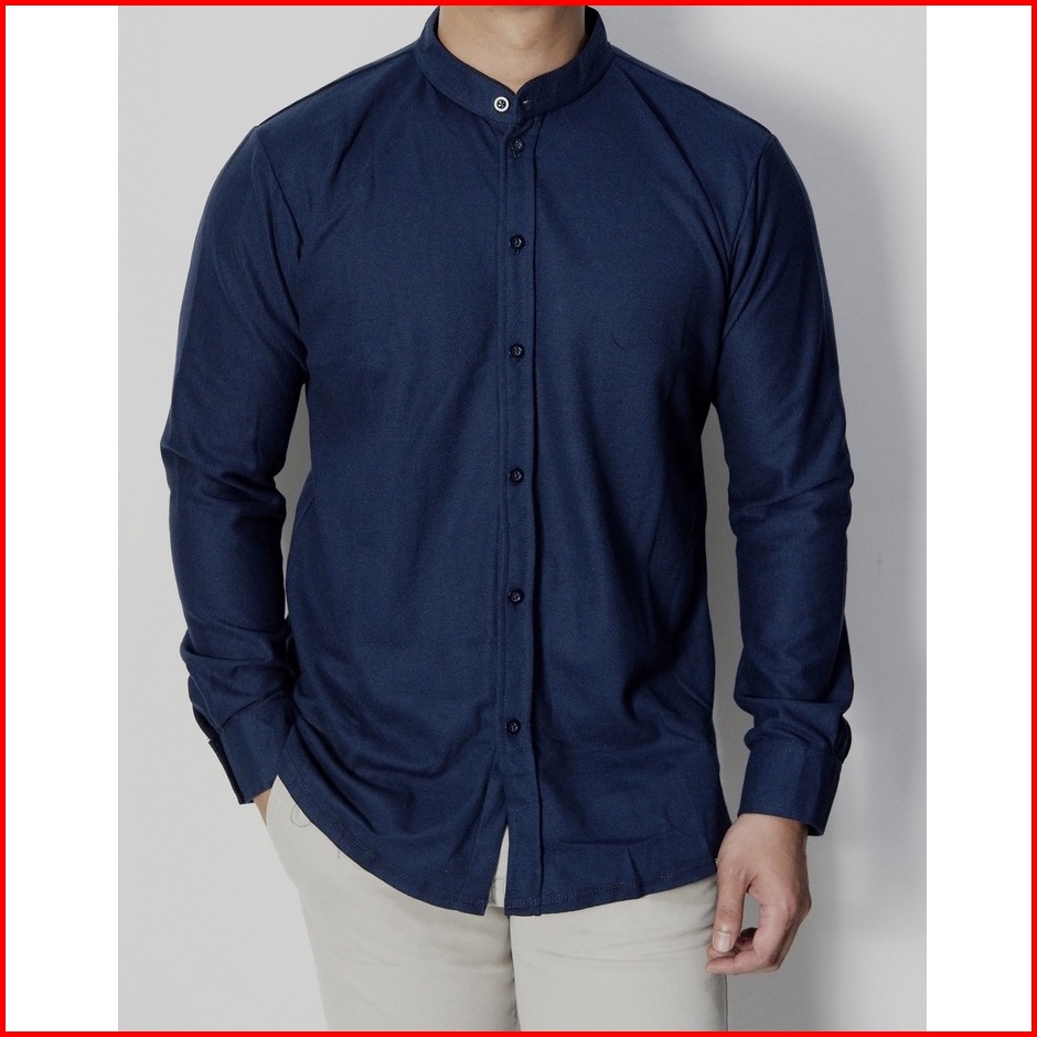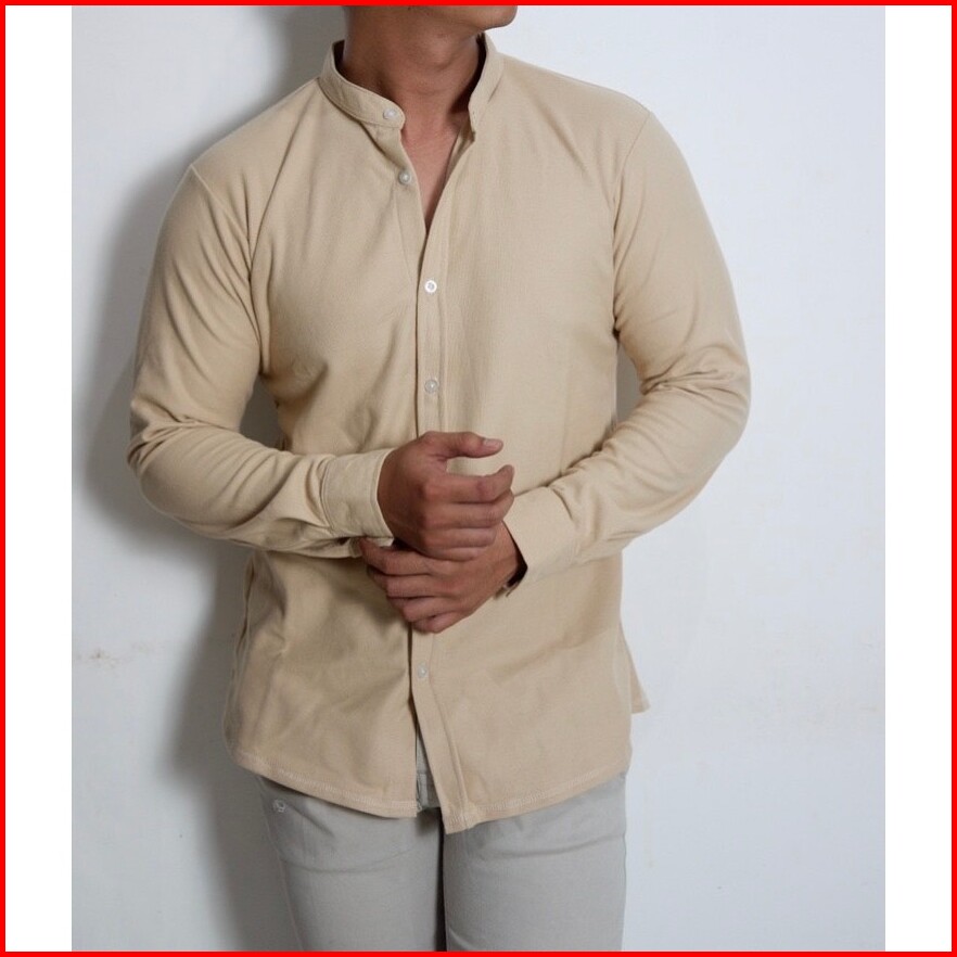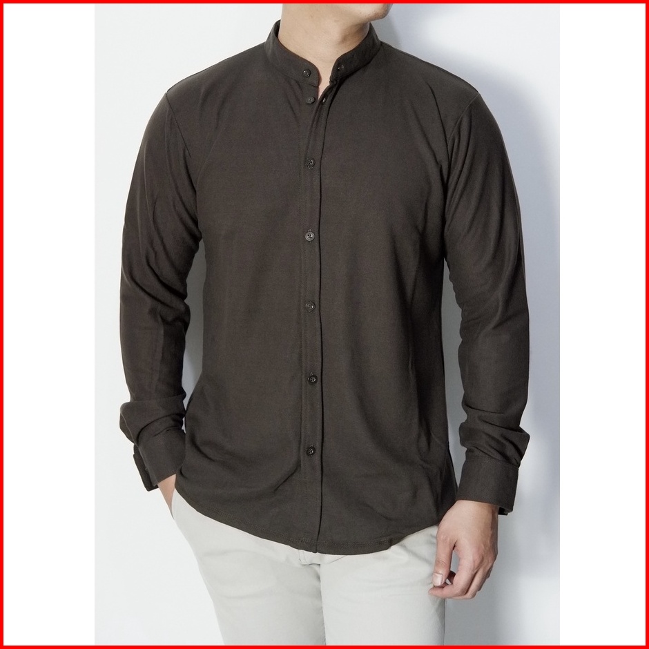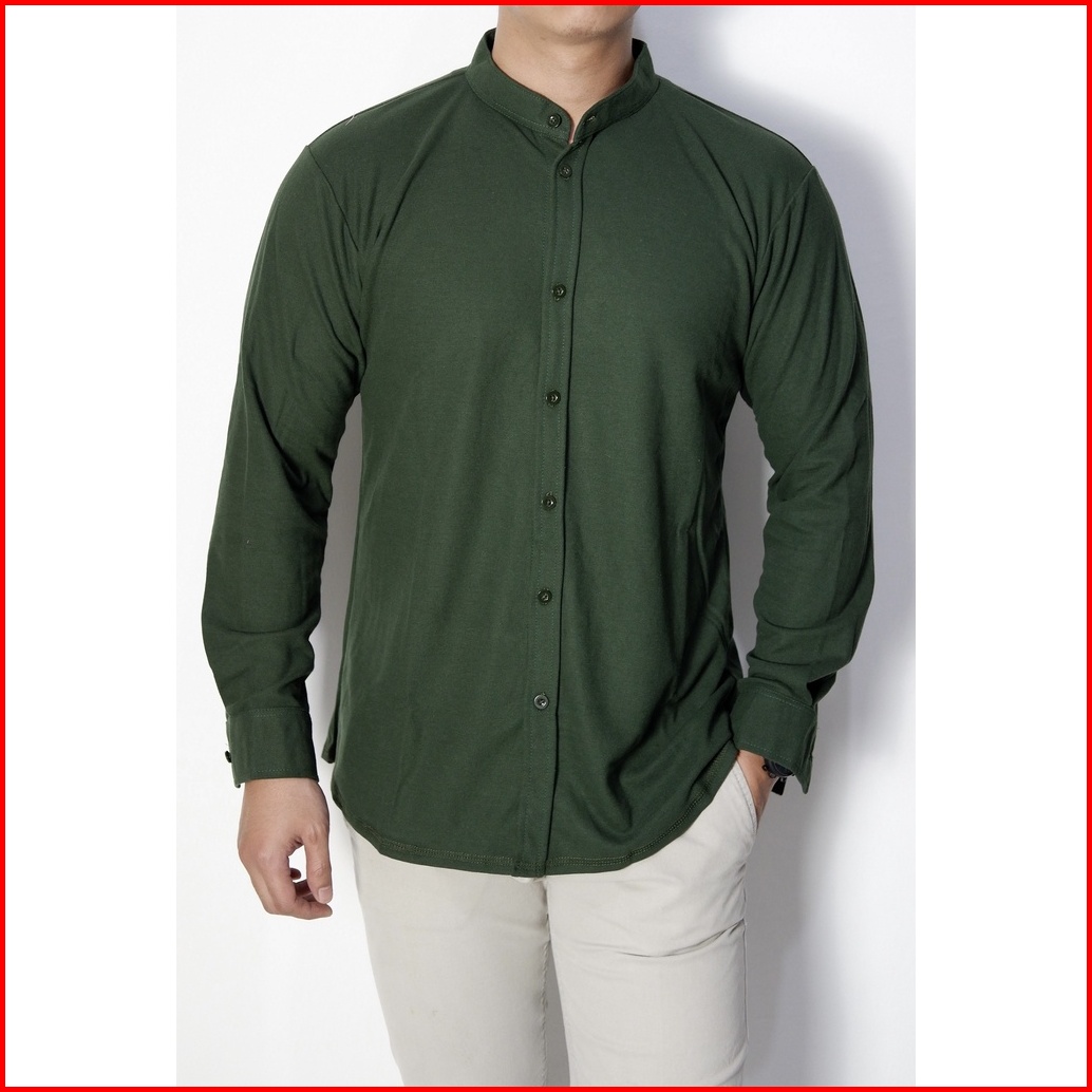 Kemeja Pria Lengan Panjang Casual Polos Cotton Pique Kerah Ciangi