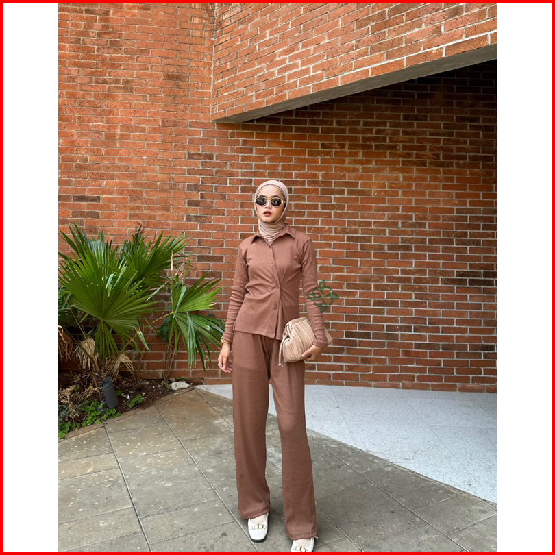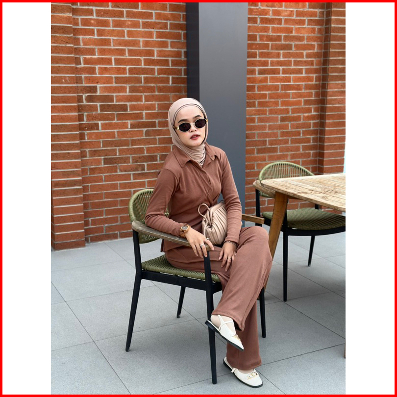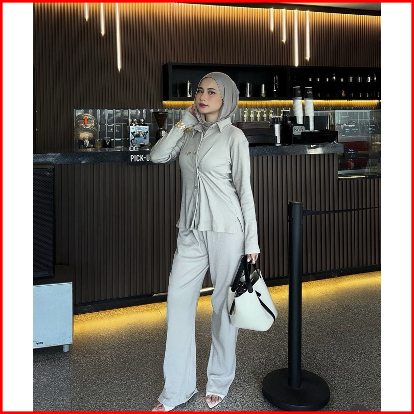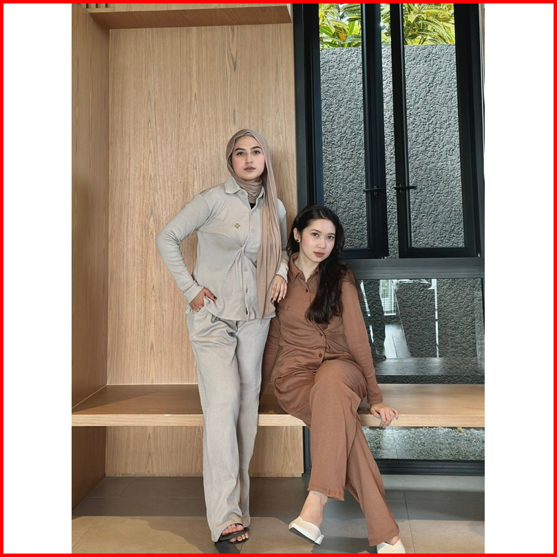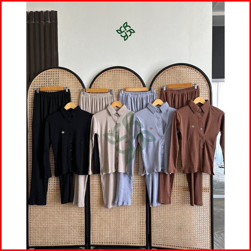 Raabiha Jennie Oneset Knit Setelan Wanita Premium Baju Set Kasual Dengan Variasi Kancing