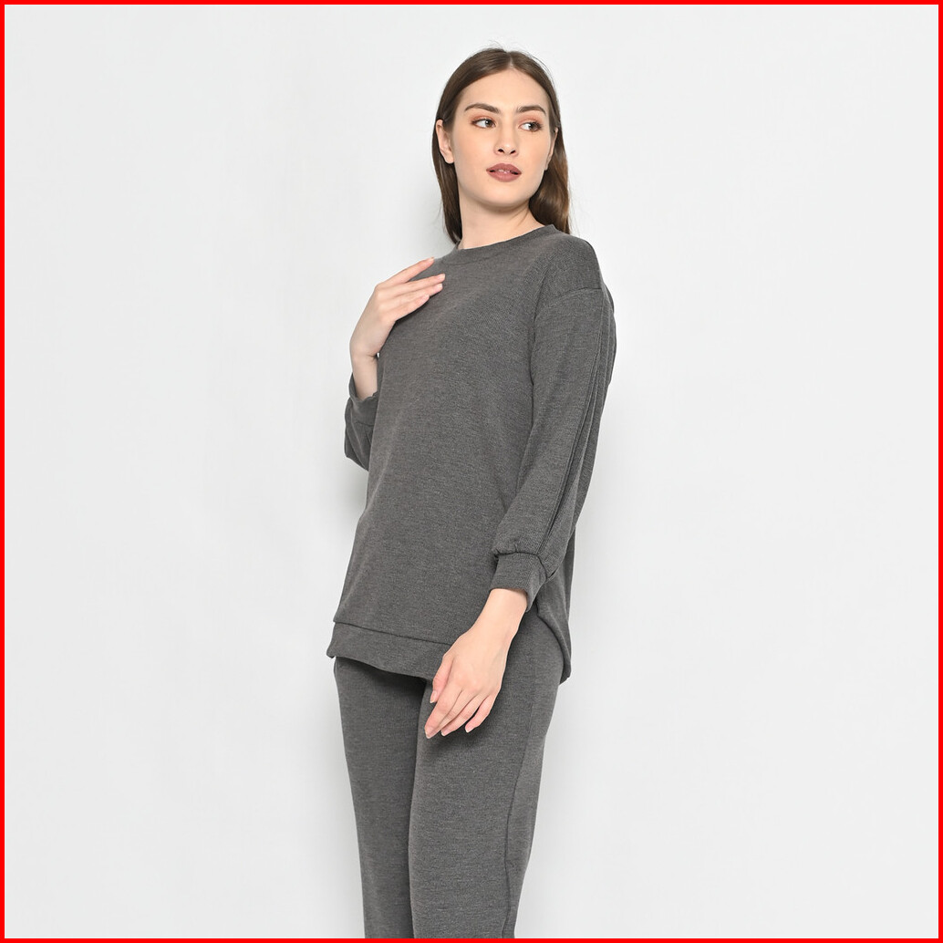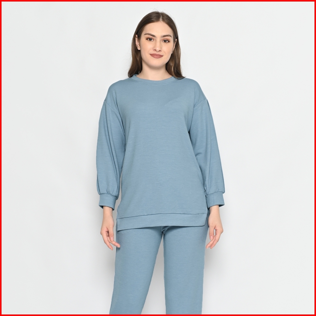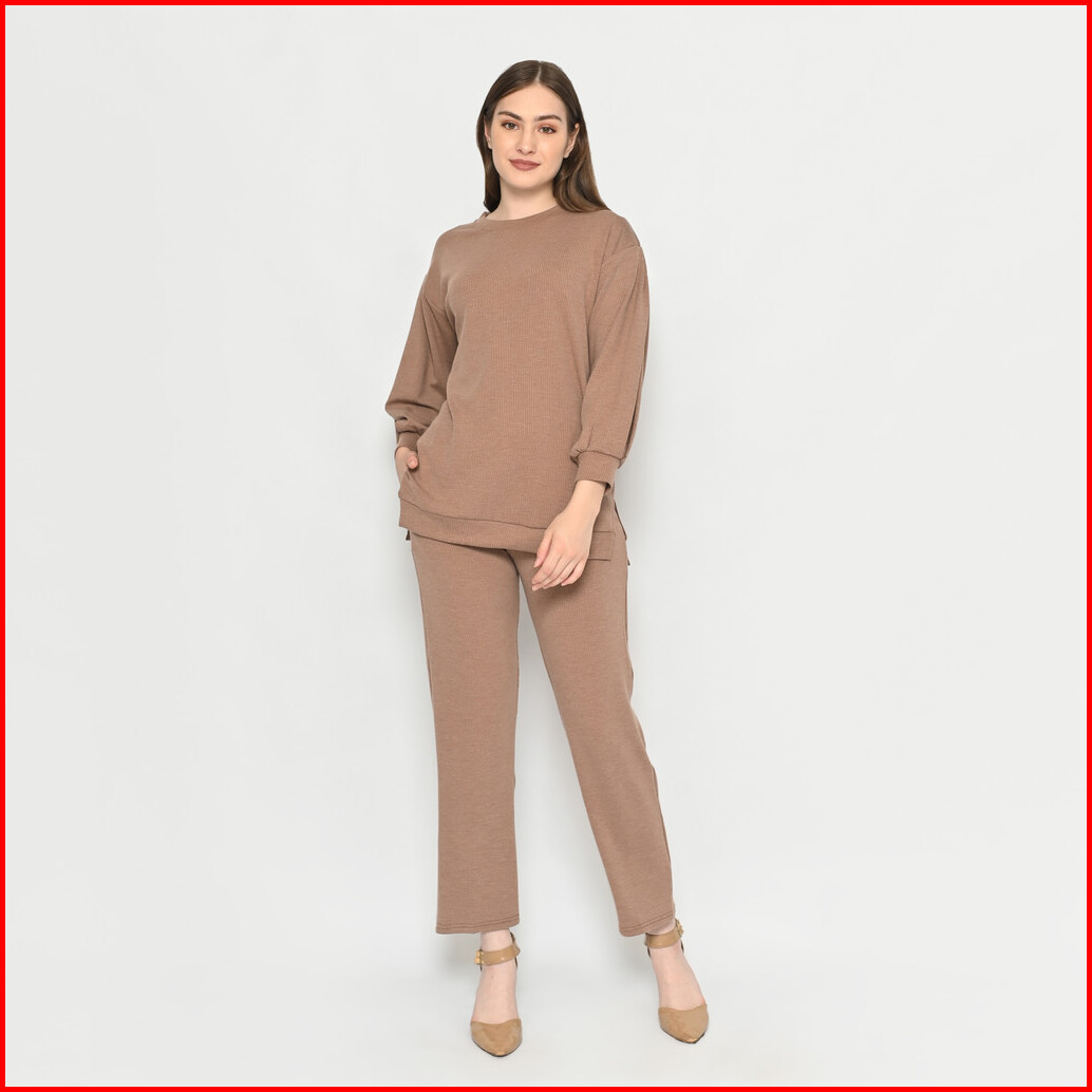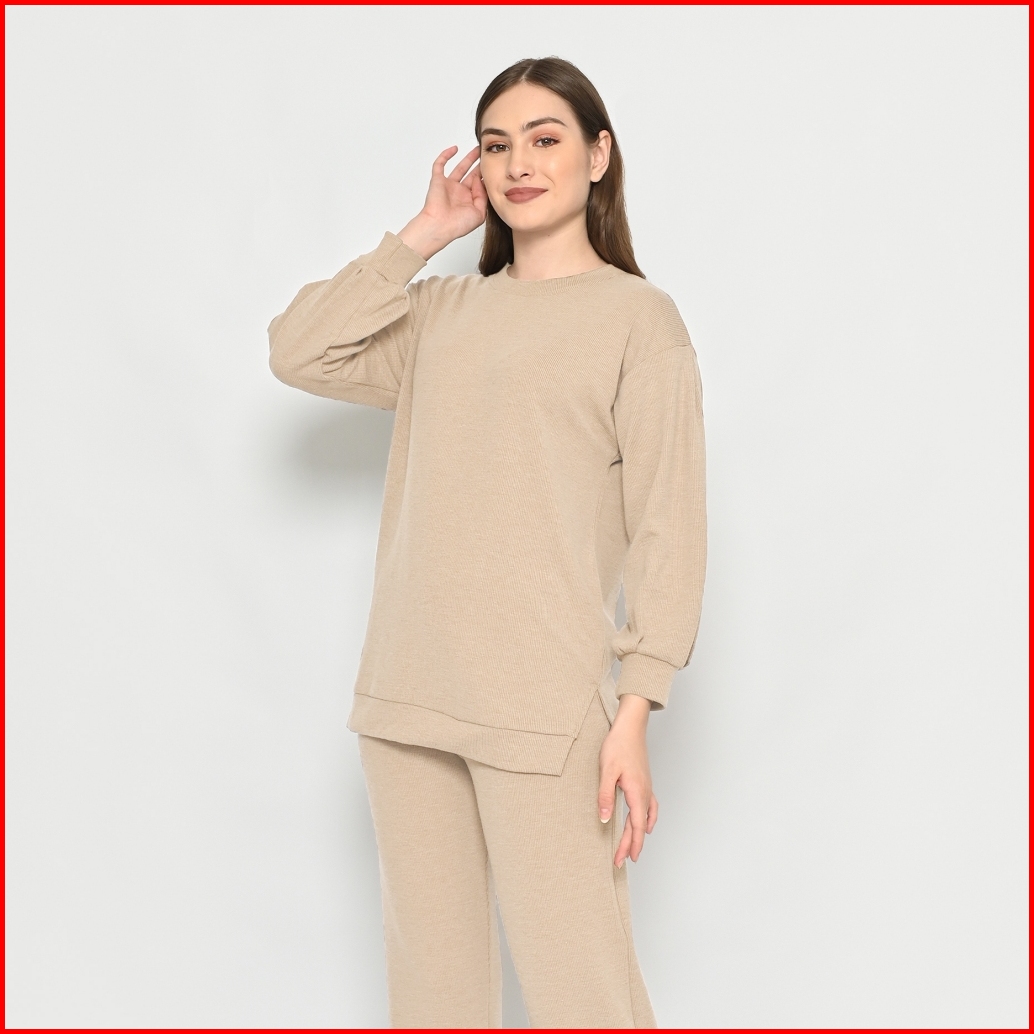 Queentin Setelan Wanita Casual 0194 Stretch Snowy Knit Polos Lengan Panjang 7 8