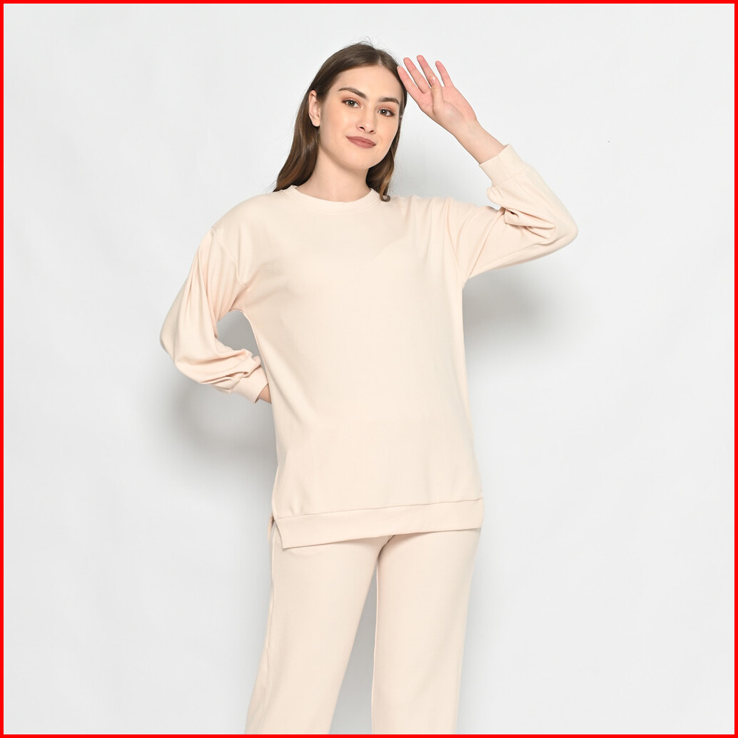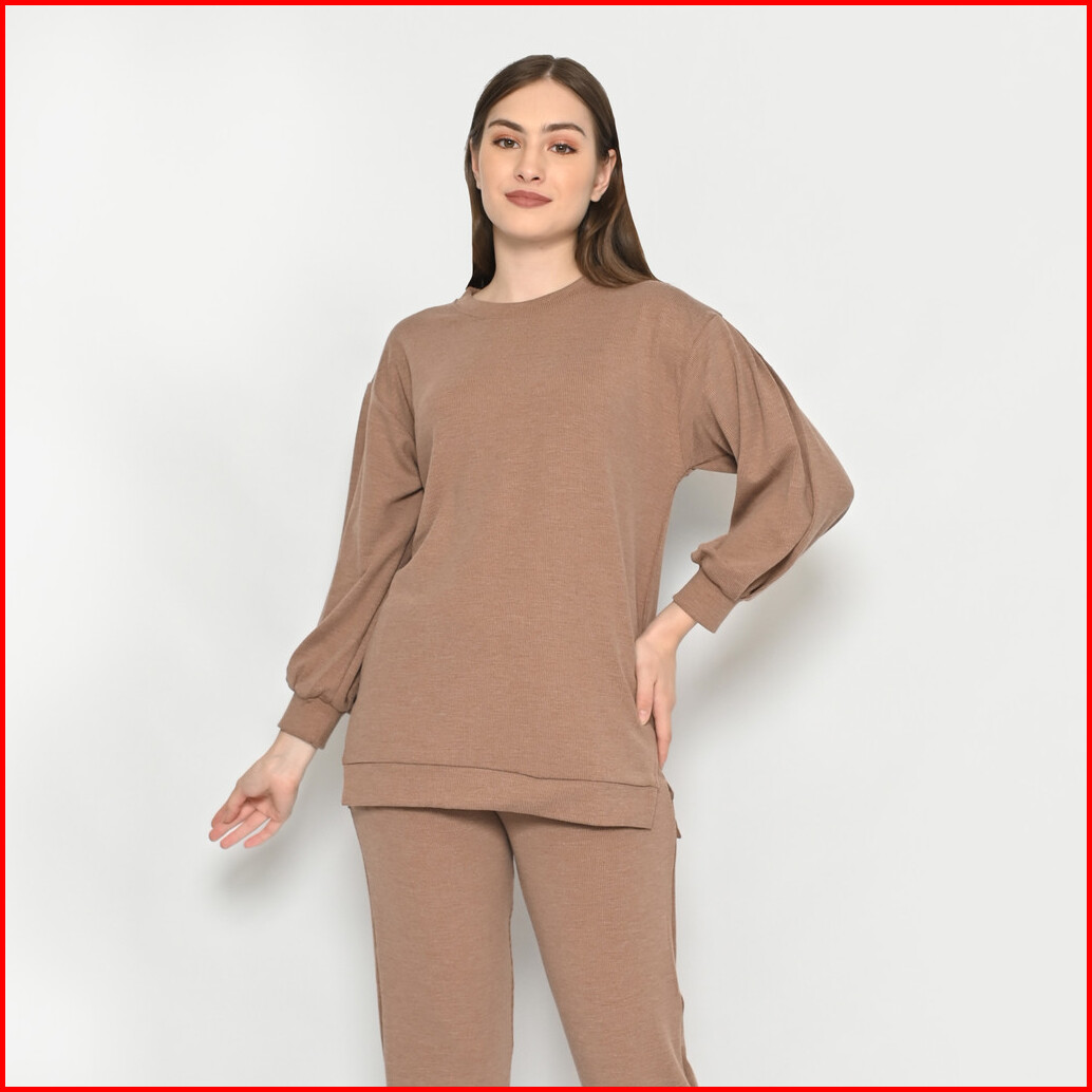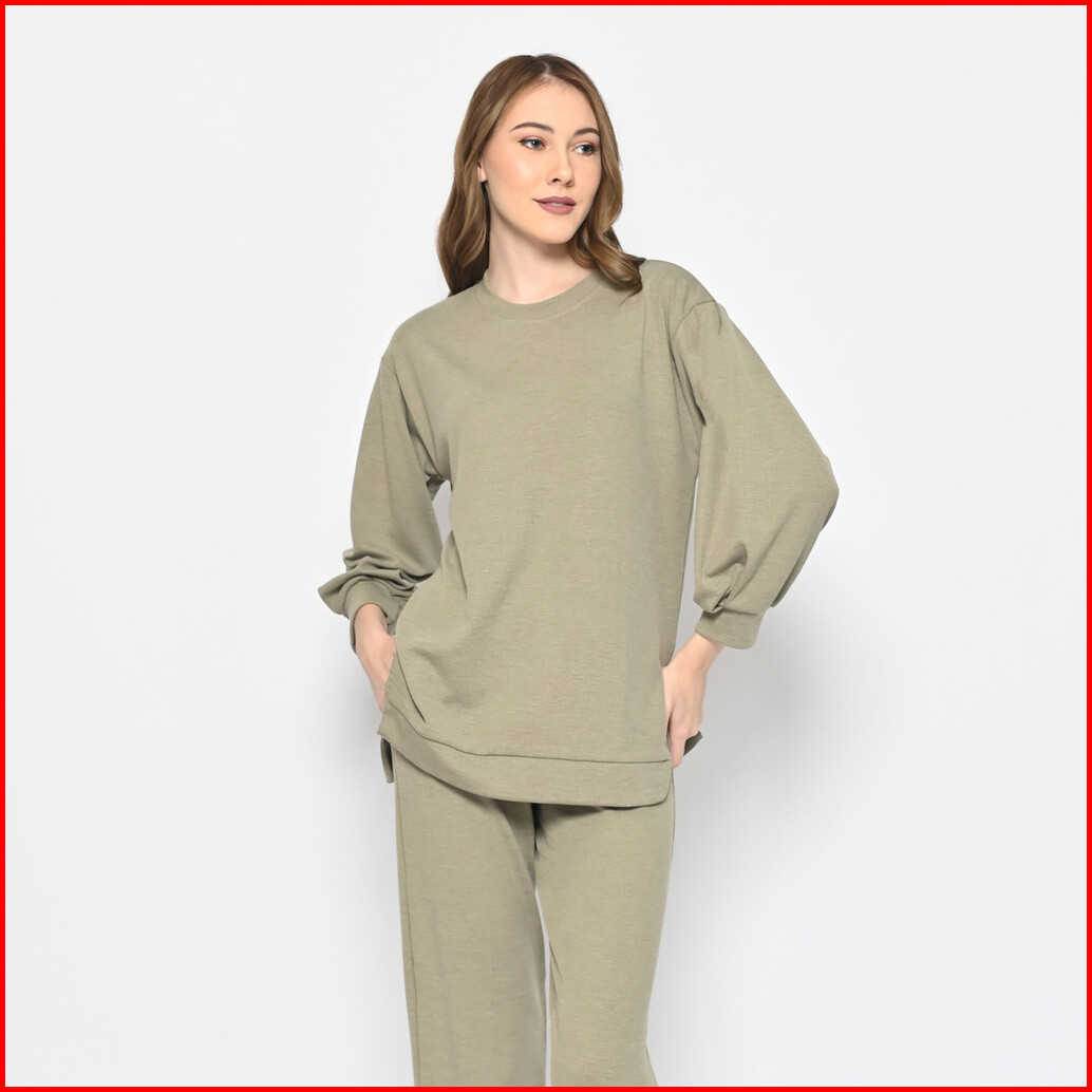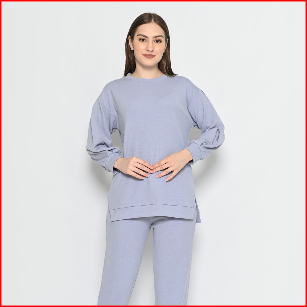 Queentin Setelan Wanita Casual 0194 Stretch Snowy Knit Polos Lengan Panjang 7 8