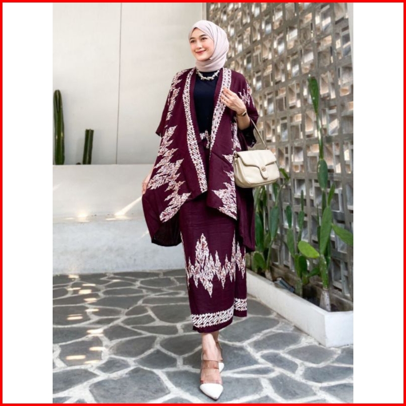 Cardigan Batik Wanita Modern Set Kebaya Modern One Set Rok Lilit Baju Kondangan Wanita Kekinian Kebaya Modern Couple Out