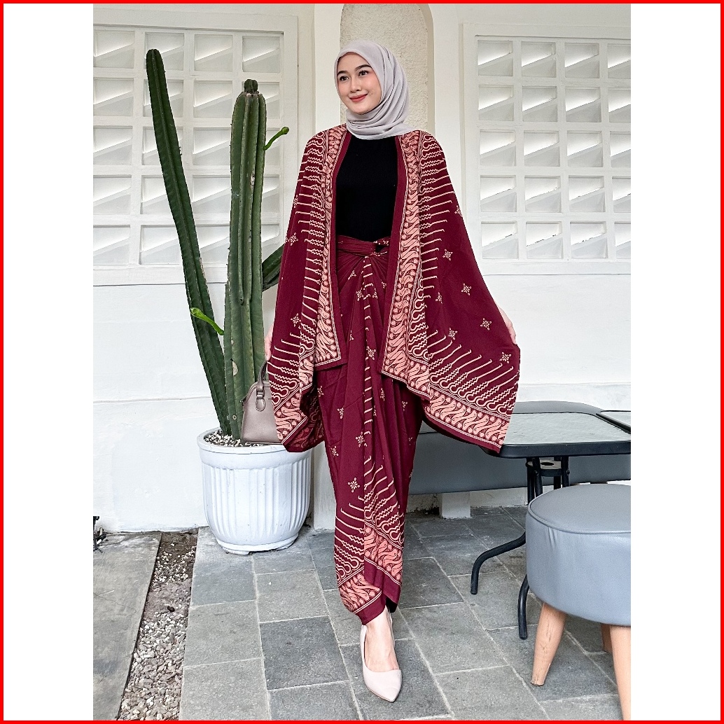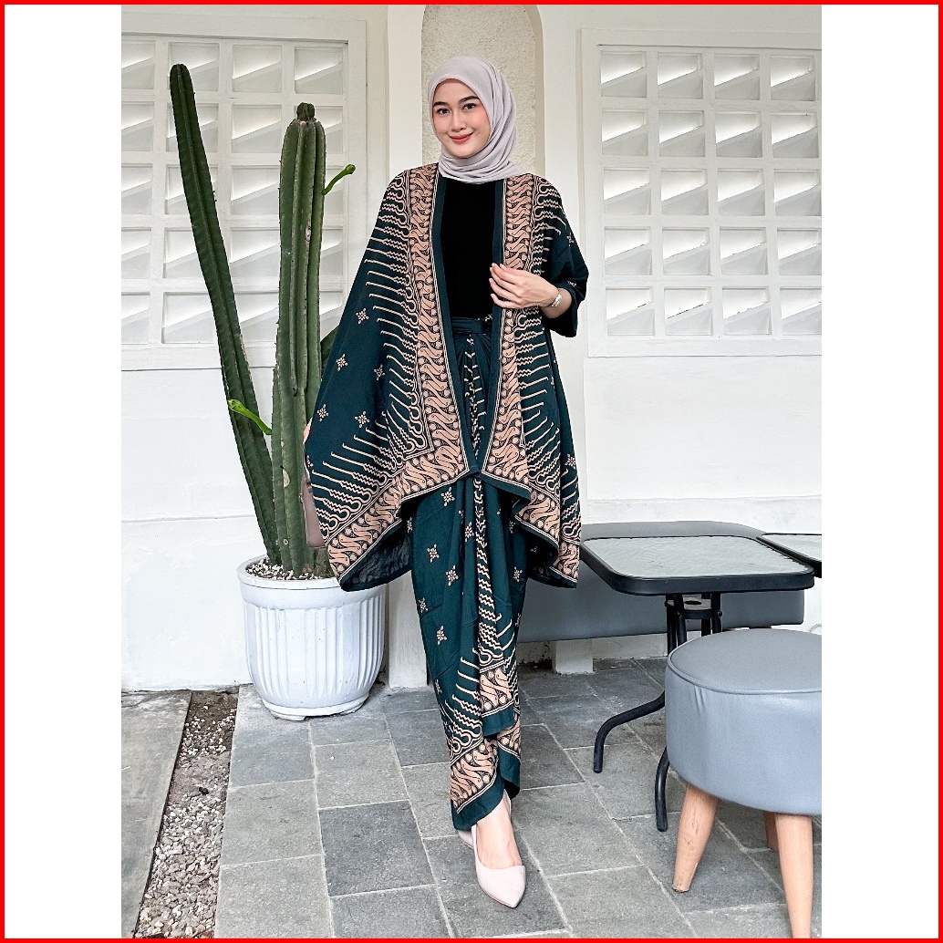 Set Prada Kebaya Modern Outfit Kondangan Baju Kondangan Simpel One Set Batik Outer Rok Lilit Kimono