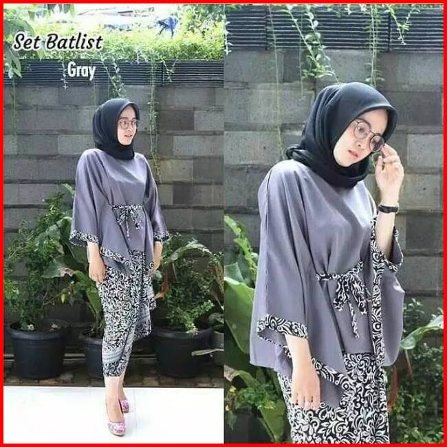 Set Kebaya Batwing List Pita Set Rok Lilit Kebaya Modern Kllebaya Abu Nevi Moca Ping Panta