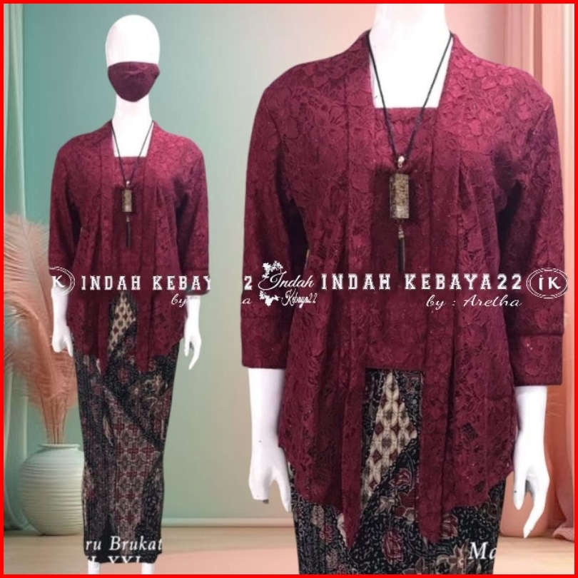 Set Kebaya Kutubaru Brokat Modern Elegan Atasan Baju Kebaya Wanita Kondangan Kebaya Lamaran Kebaya Wisuda Kartini