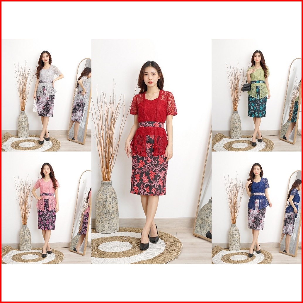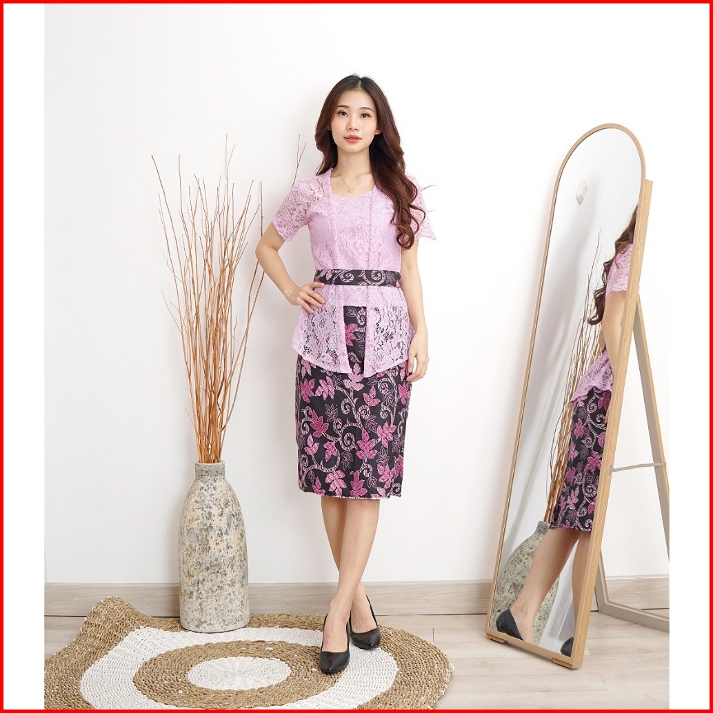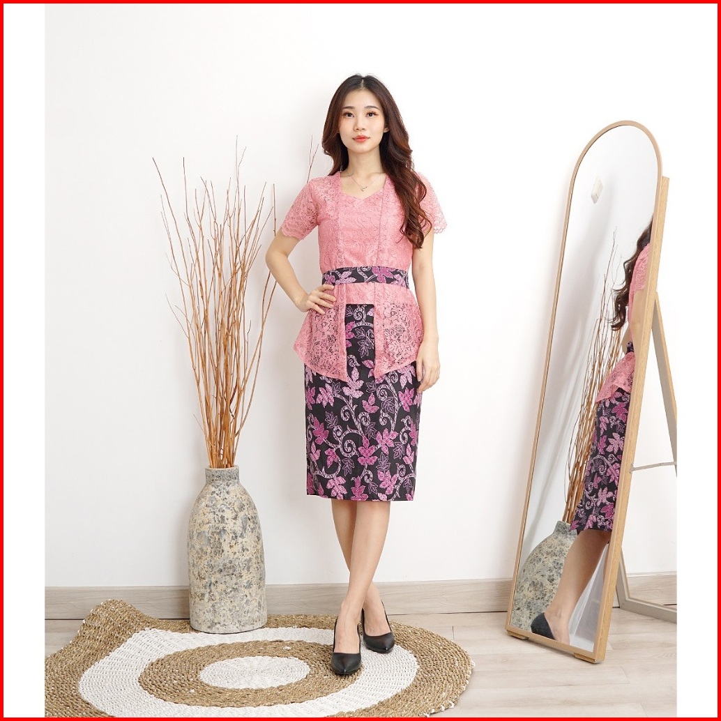Setelan Kebaya Brukat Batik Pesta Kondangan Chika Kebaya Bali Modern Wanita Wisuda