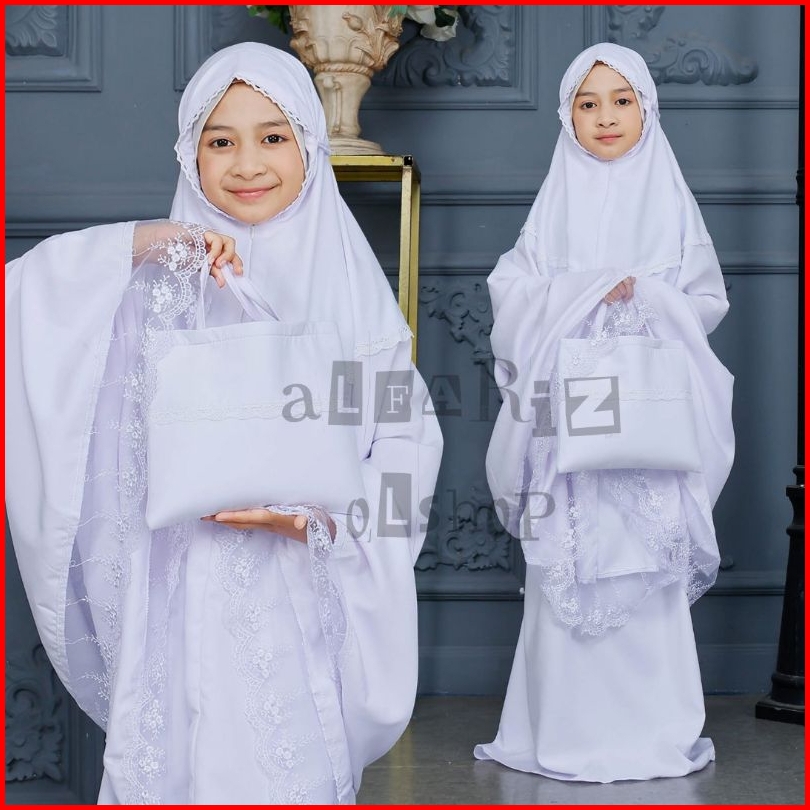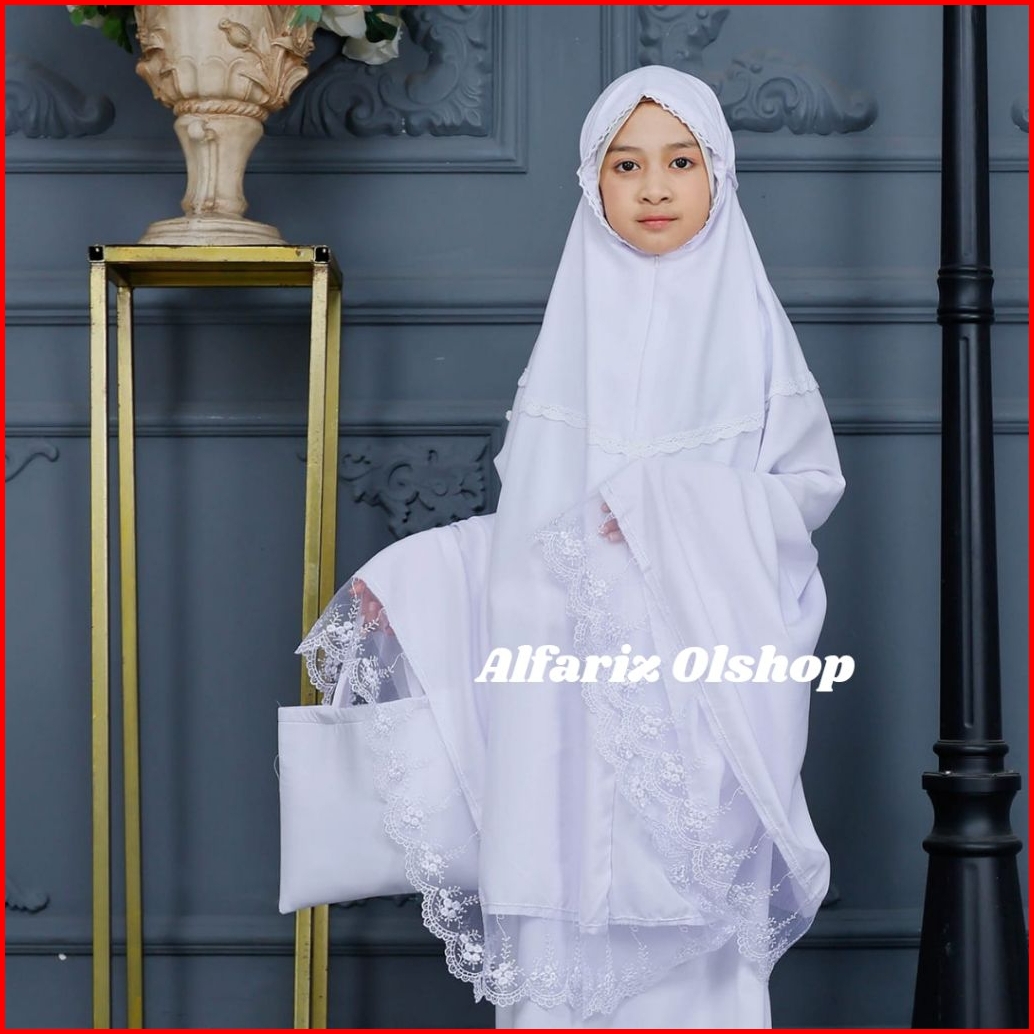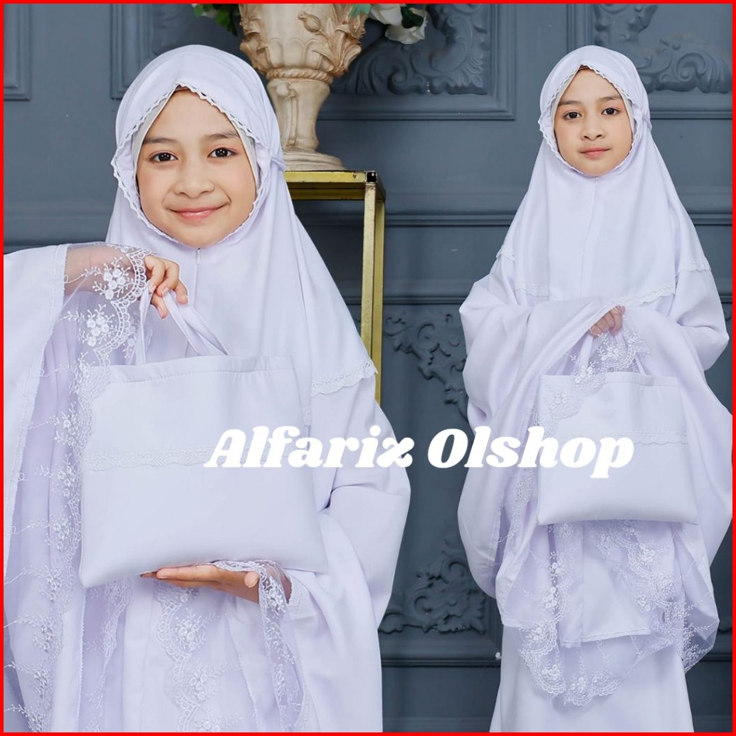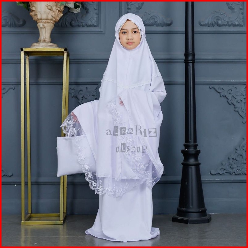 Mukena Anak Tanggung Hilya 2in1 Resleting Renda Mewah Usia 8 Sampai 11tahun Bahan Katun Premium
