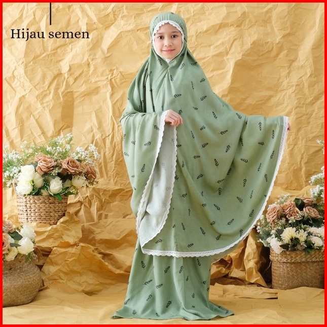 Mukena Anak Tanggung 9-14 Tahun Cantik Super Adem Motif Reina Kombinasi Bahan Dingin Rayon Premium
