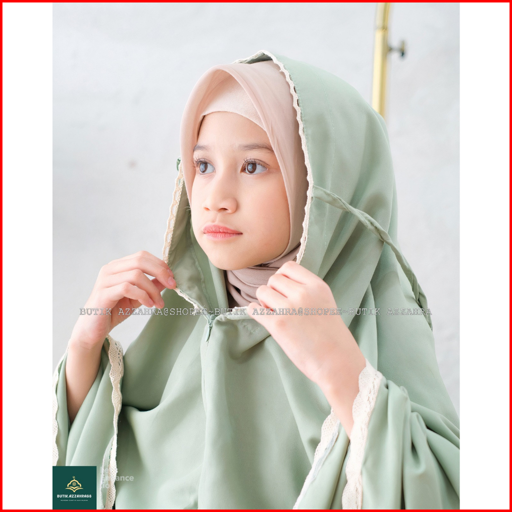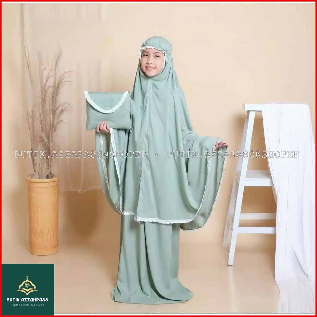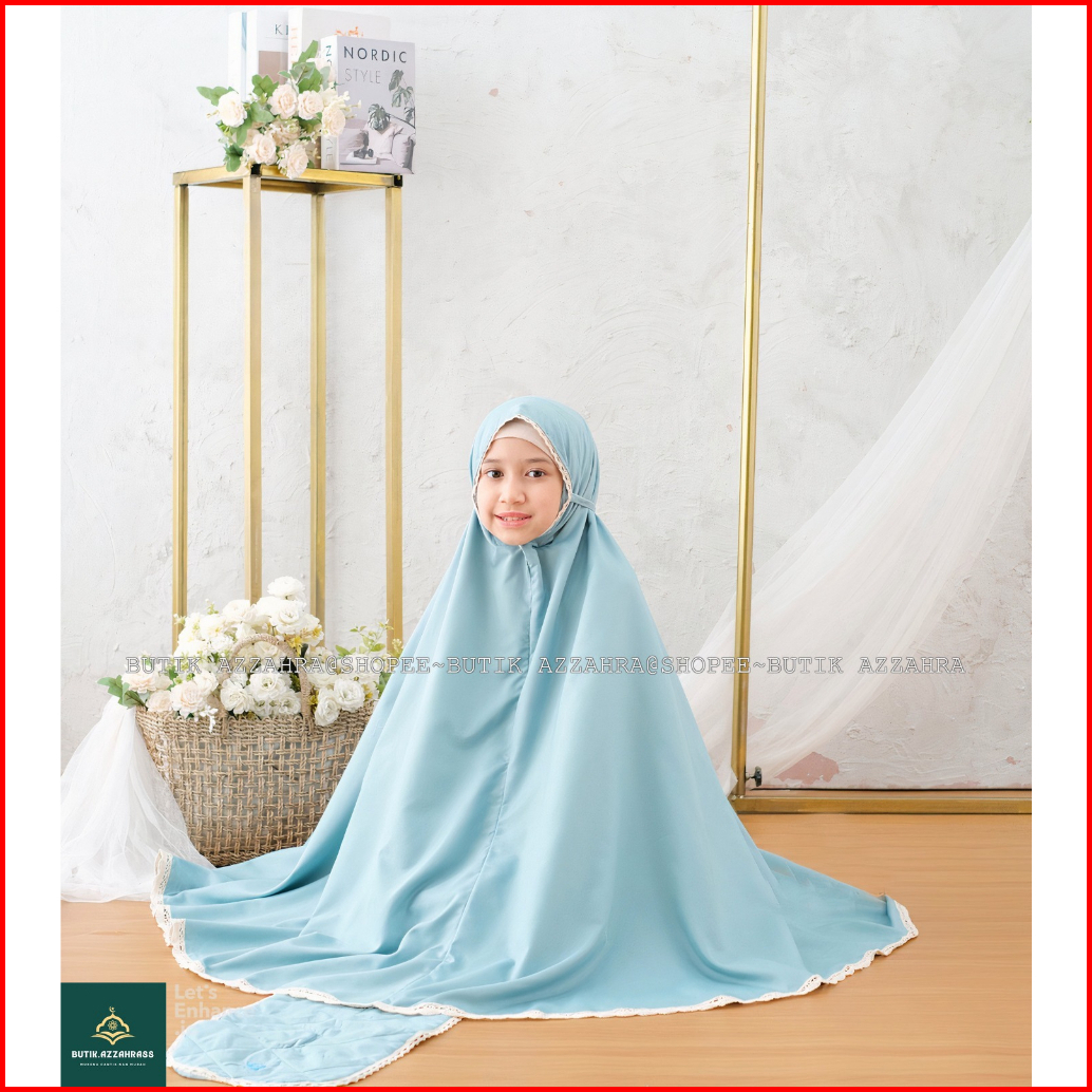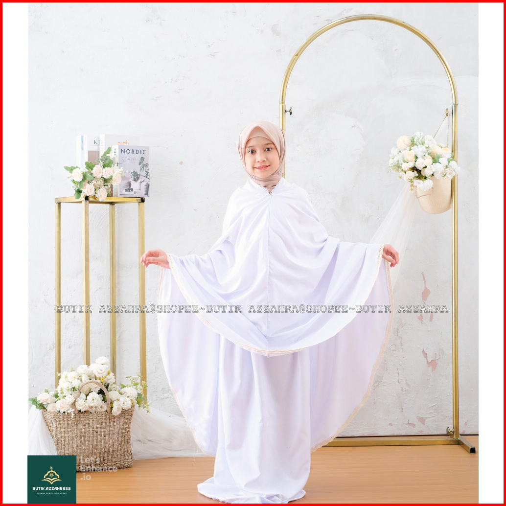 Butik.azzahra88 Mukena Anak Tanggung Sheila Bali Polos Renda Resleting 2in1 Fatimah