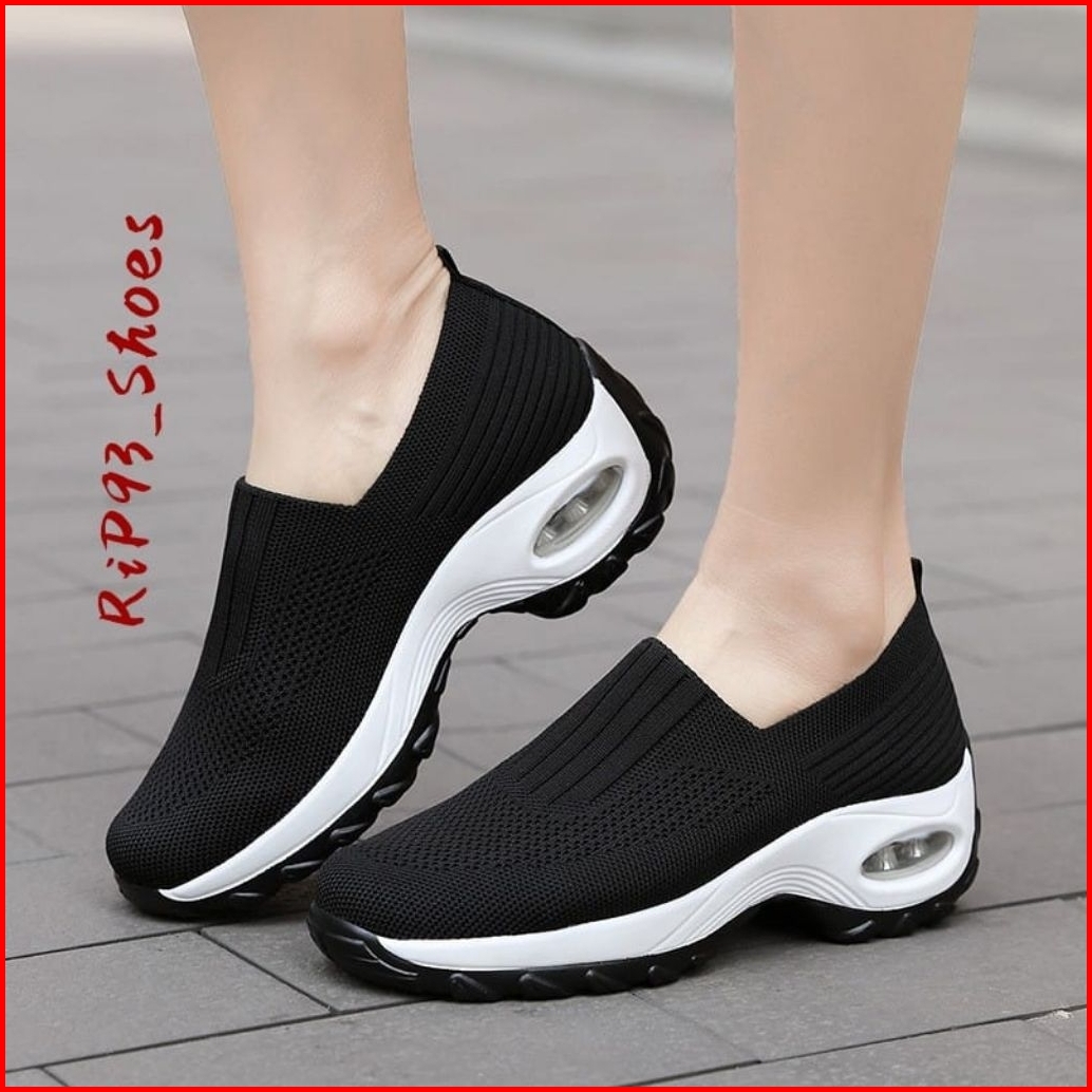 Sepatu Sneakers Rajut Import Wanita Slip On Model Sol Tabung