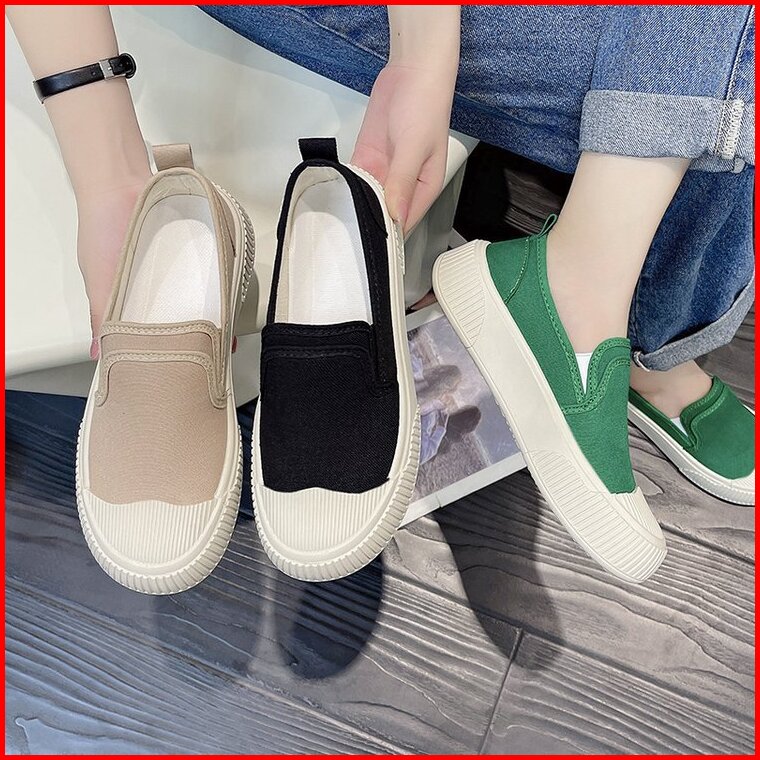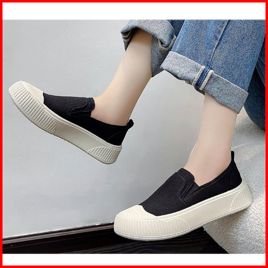 Tbig Sepatu Slip On Wanita Sepatumia Bahan Canvas Import Korea Style Santai Wanita Remaja Ls01