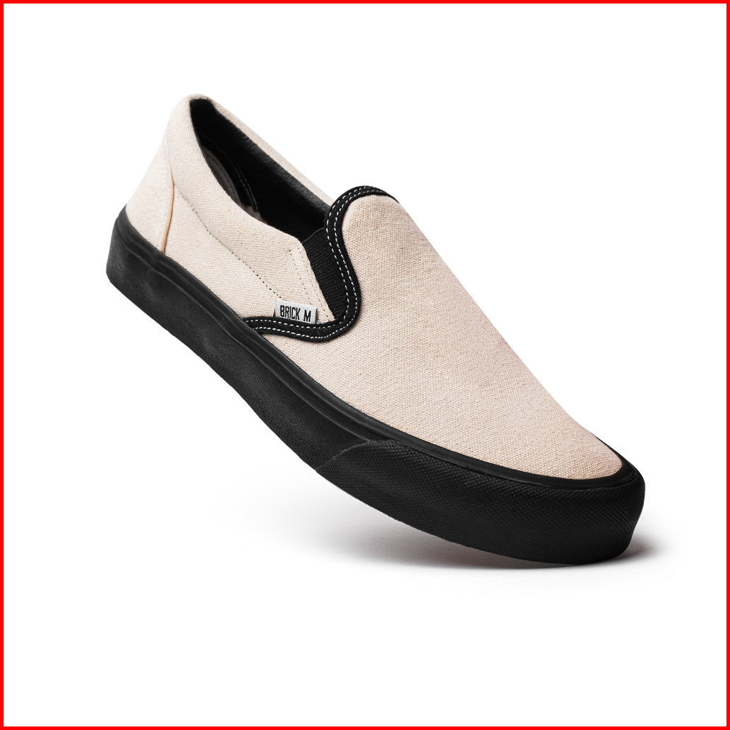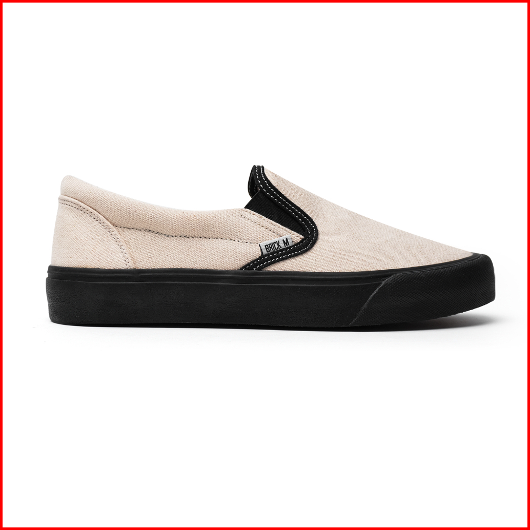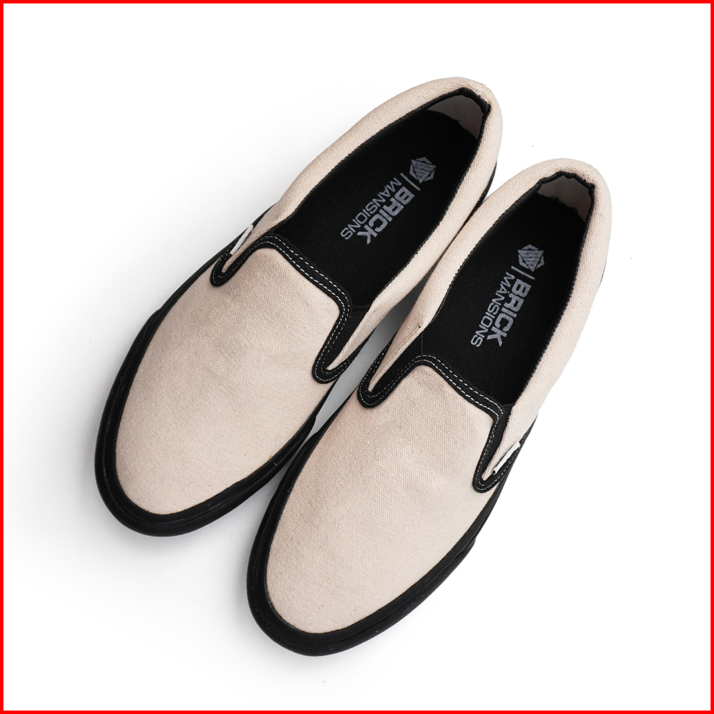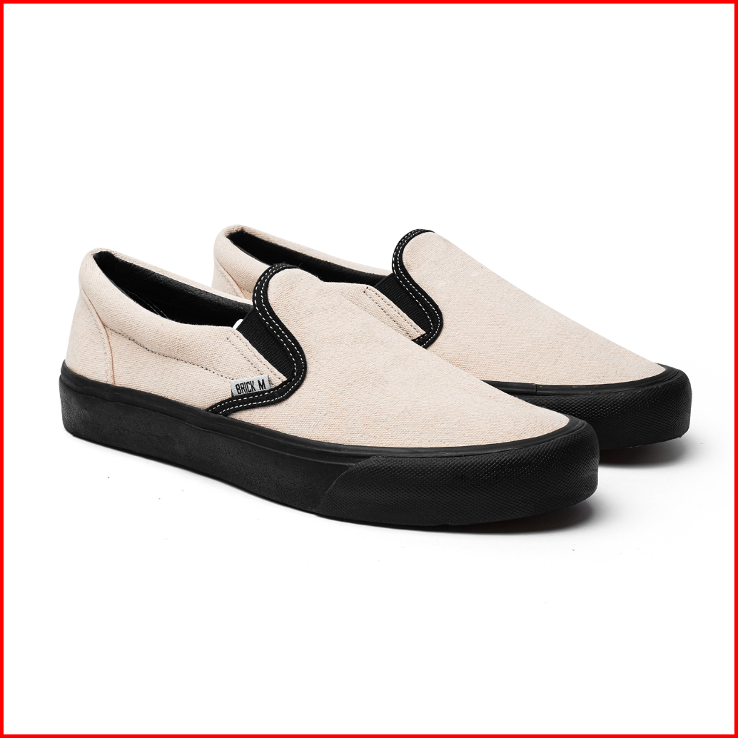 Brick Mansions - Mission Off White Black Sepatu Slip On Sneakers Casual Pria Wanita