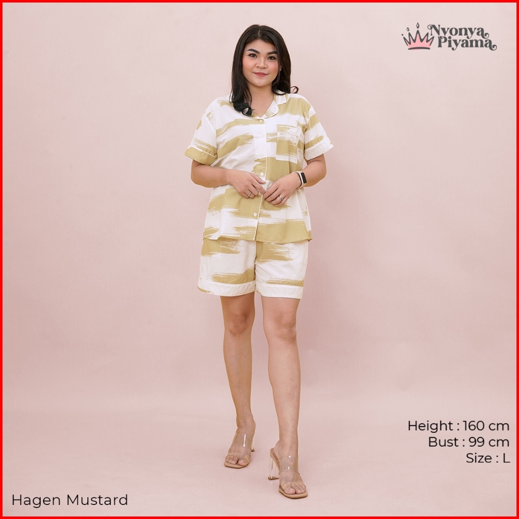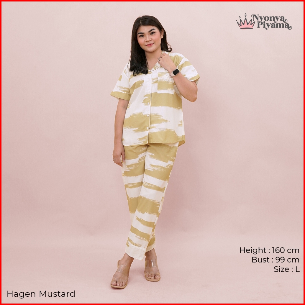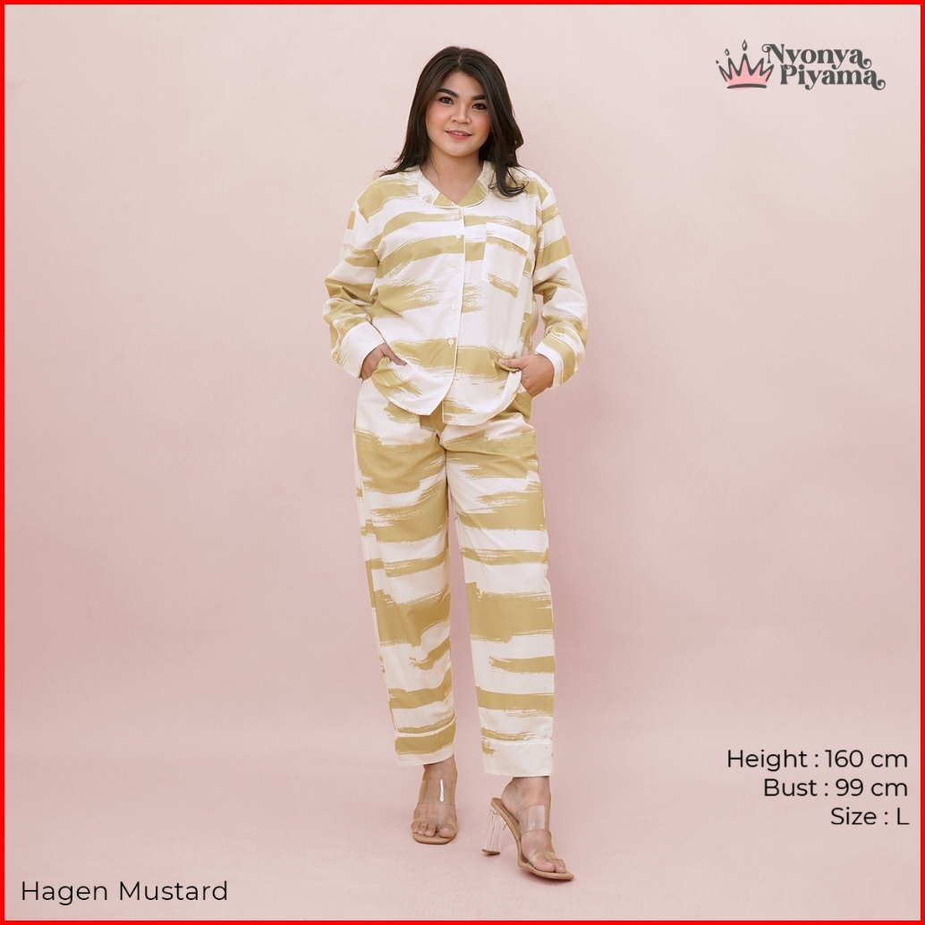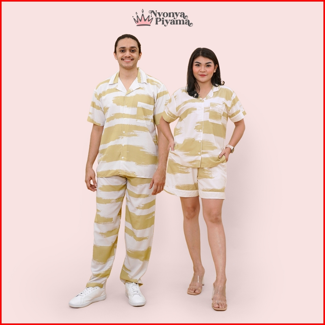 Nyonya Piyama Set Katun Classic Couple Hagen Mustard