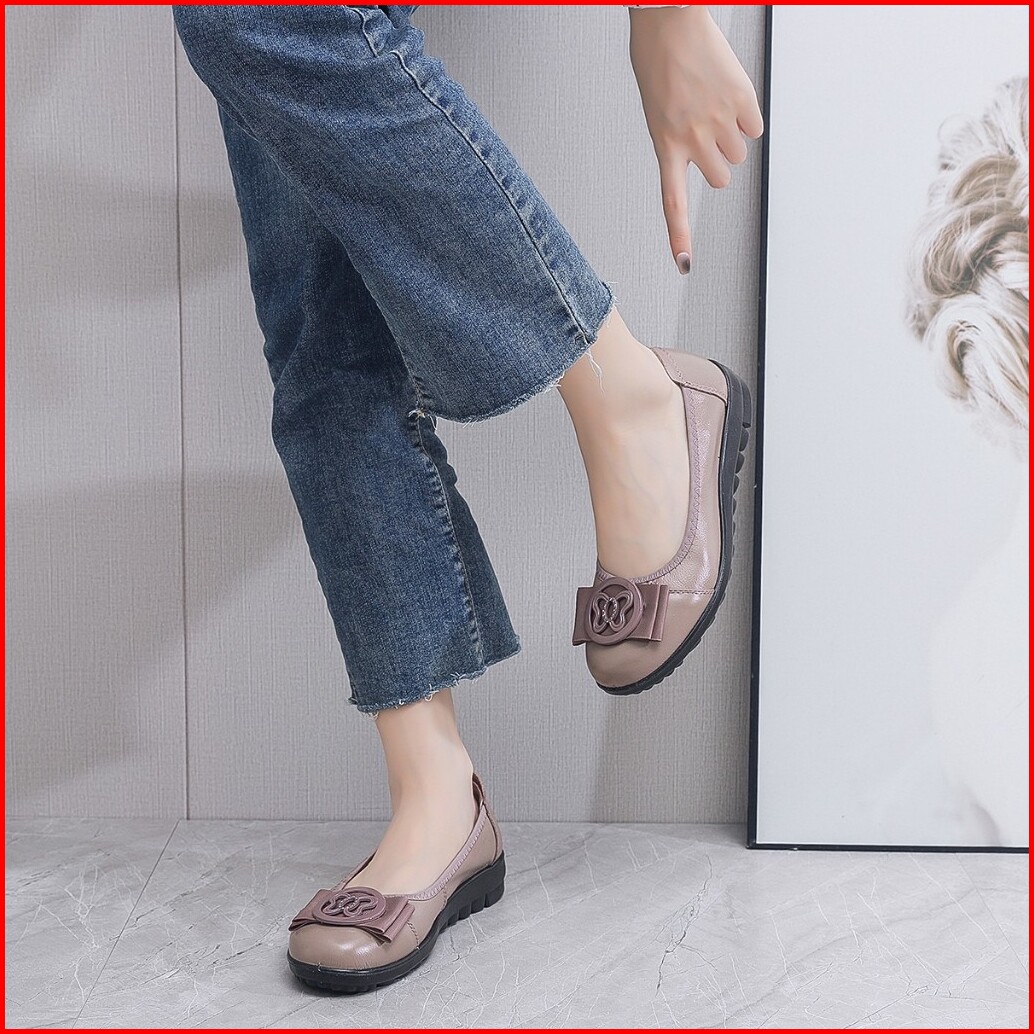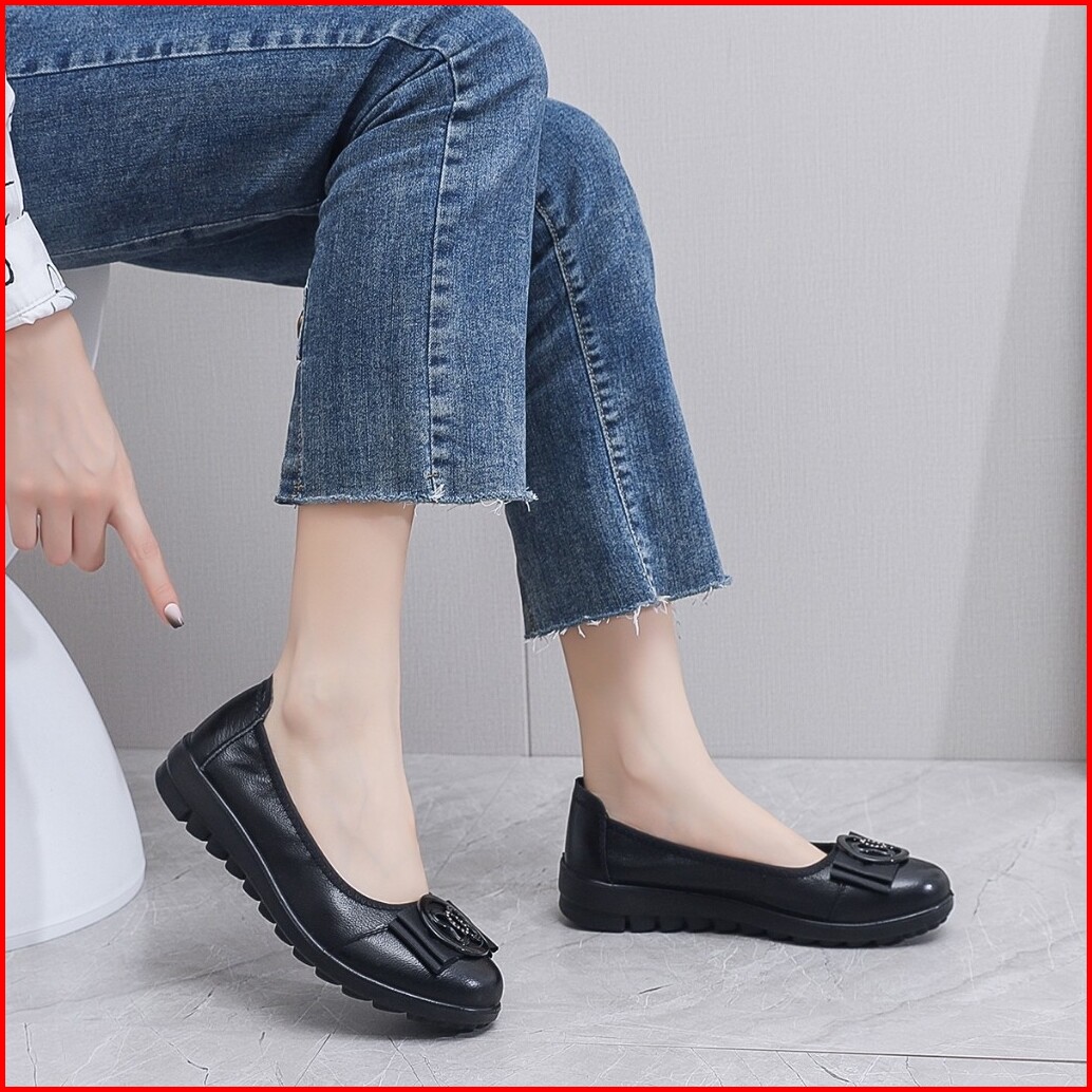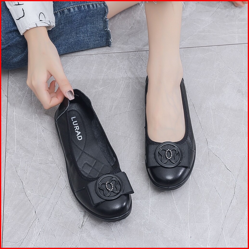 Lurad Sepatu Wanita Flat Slip On Kulit Sepatu Cewek Cantik Kuliah Kerja Santai Kualitas Kece 1865