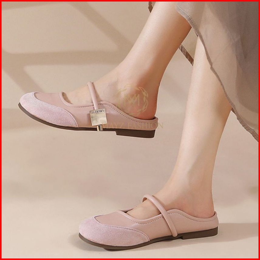 Flatshoes Slipon Wanita Sepatu Casual Merah Silver Beige Pink D37