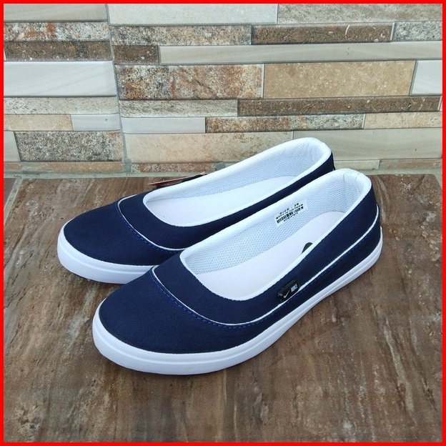 Sepatu Wanita Slip On 05 Navi Putih.sepatu Flat.sepatu Slip On Terbaru Dan Terlaris