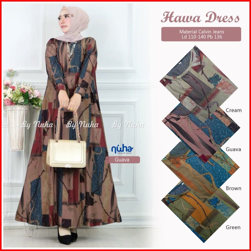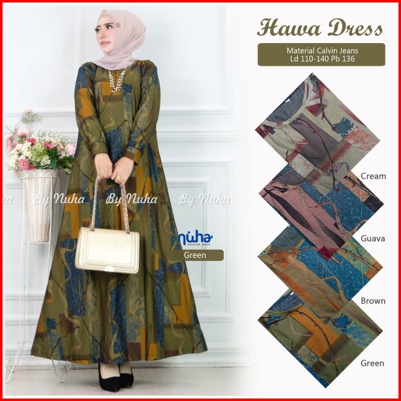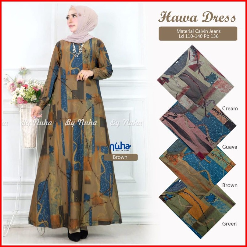 Gamis Terbaru 2023 Hawa Dress By Nuha Jumbo Ld 110 Melar Sampai 130 Pb 137 Fit Xxl - Xxxl Calvin Jeans Premium Hq Tebal