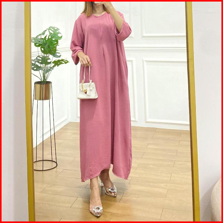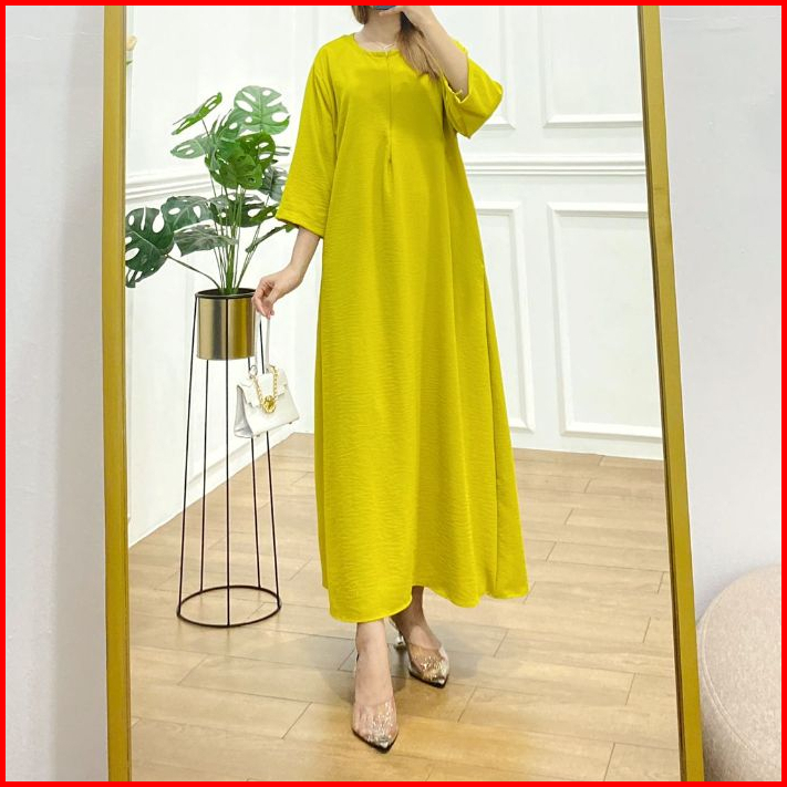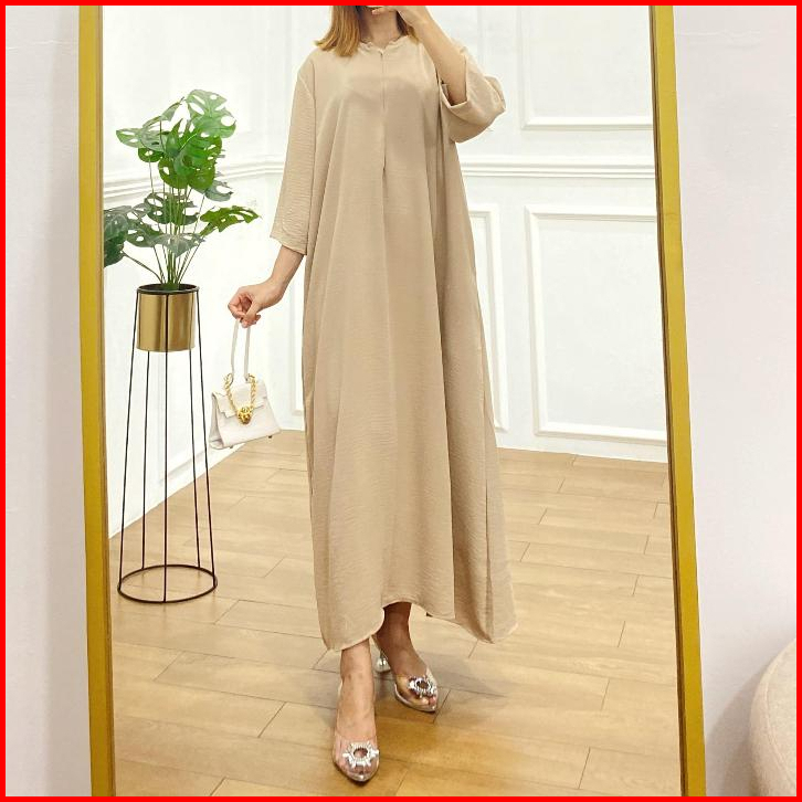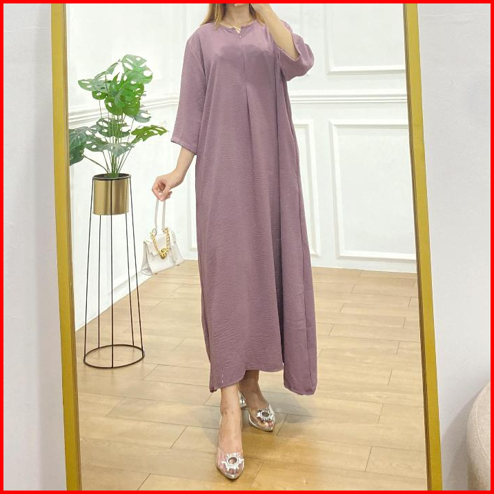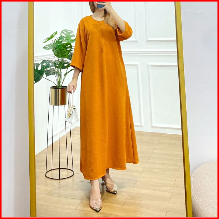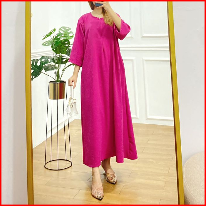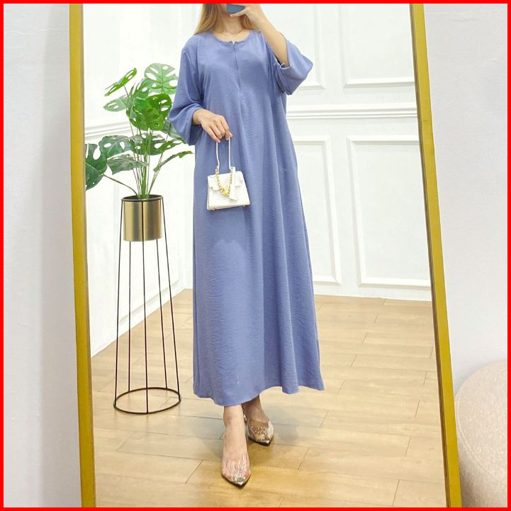 Mister Crinkle Airflow Tangan 3 4 Gamis Daster Dress Cringkle Busui Resleting Anti Kusut Elastis Jumbo Viral Kekinian Ld