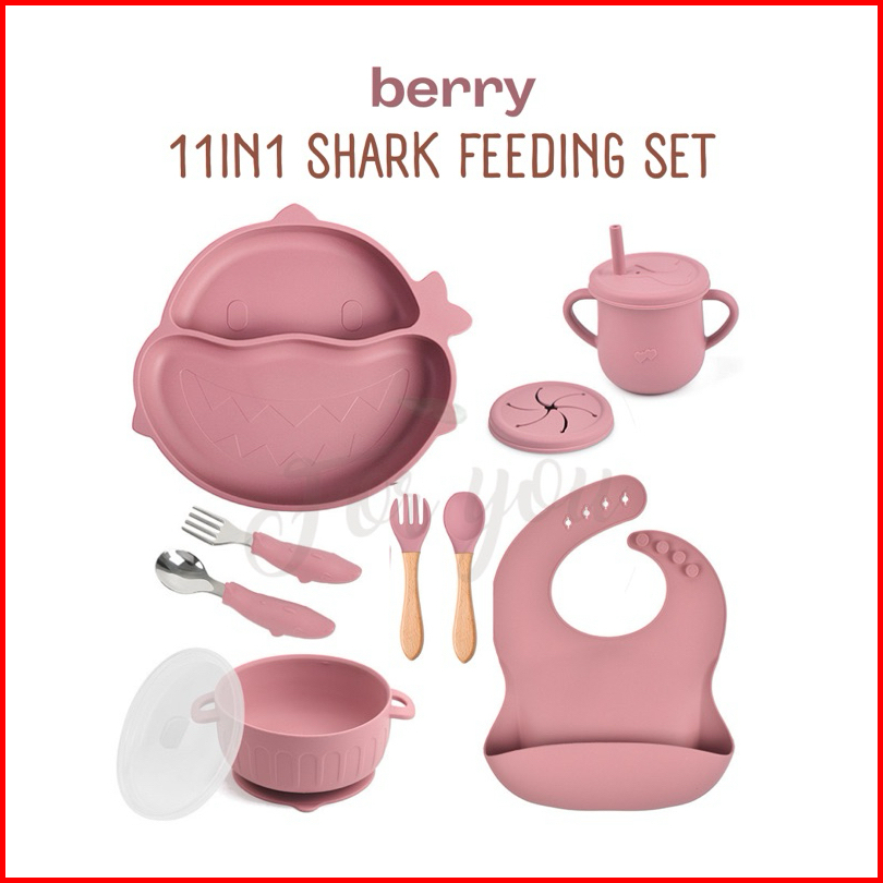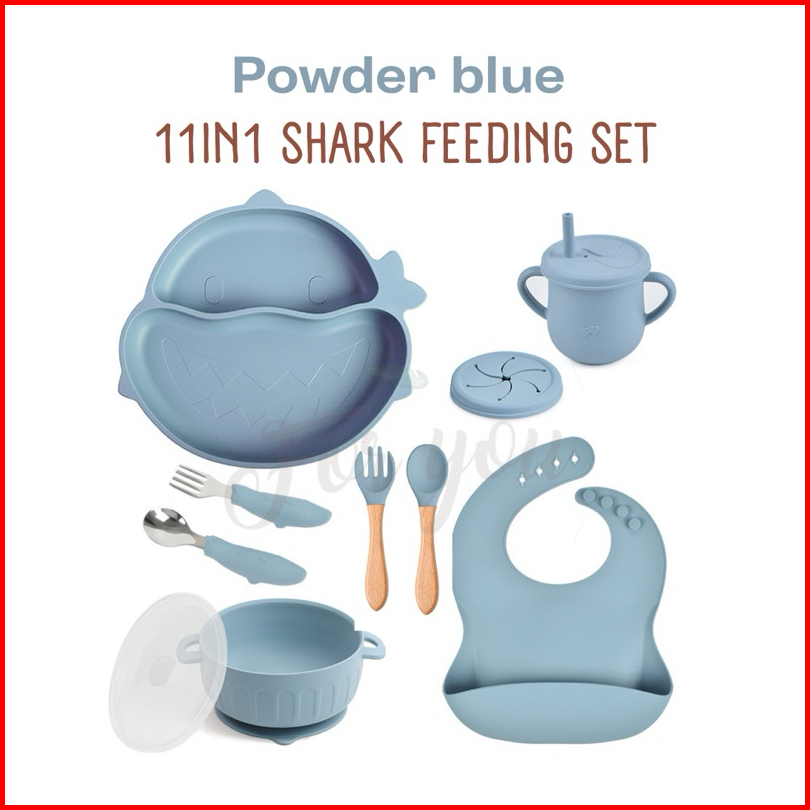 Foryou Gift Box - 10in1 Dino New 11in1 Baby Shark Stainless Steel Feeding Set Wood Name Script Free Box Free Gift Card